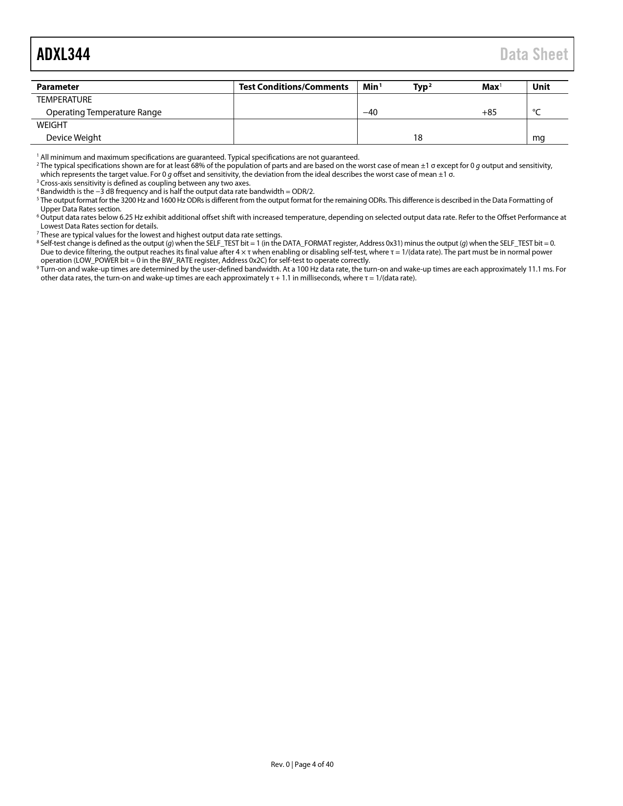 ADXL344 Data Sheet Parameter Test Conditions/Comments Min1 Typ2 Max