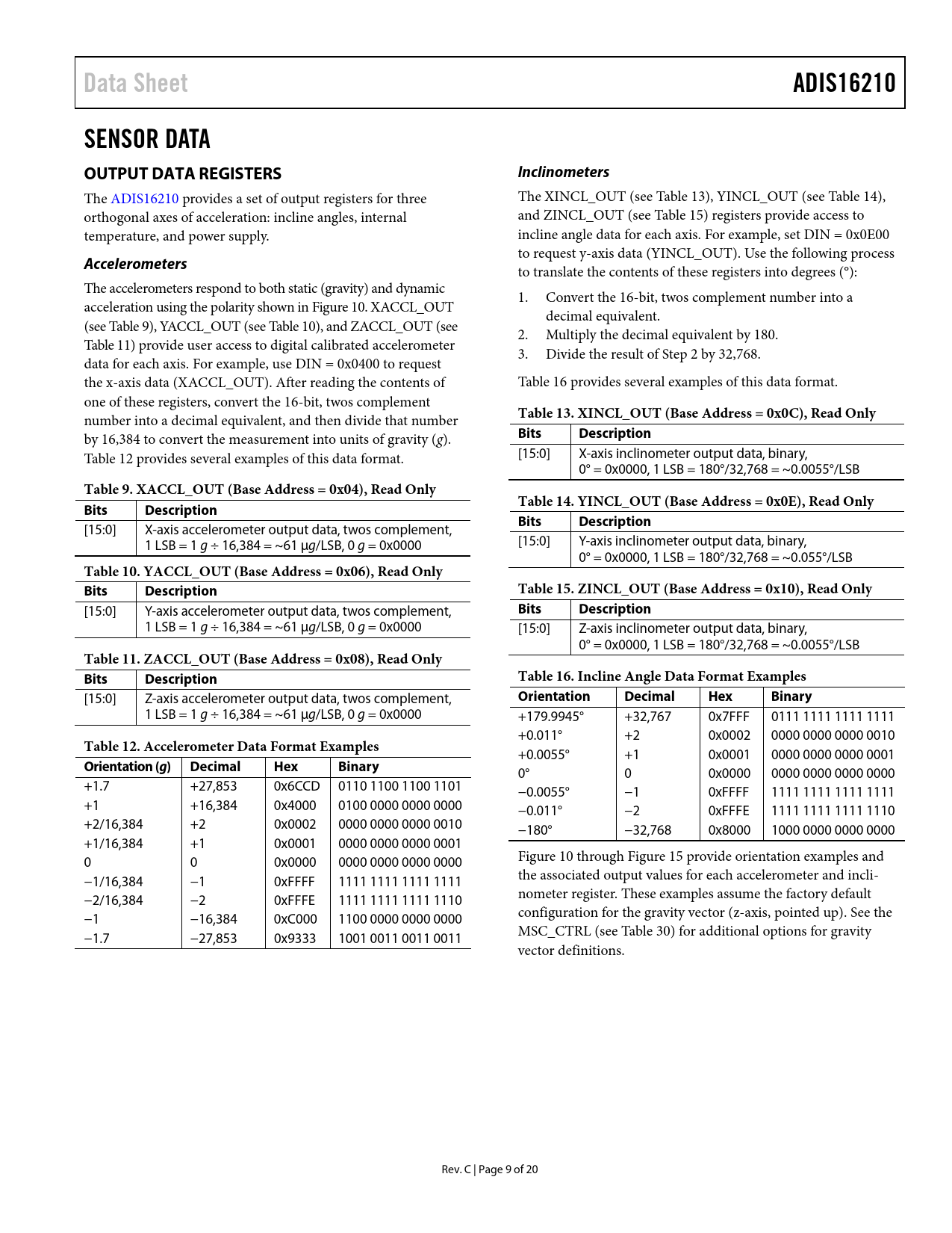 Data Sheet ADIS16210 SENSOR DATA OUTPUT DATA REGISTERS Inclinometers