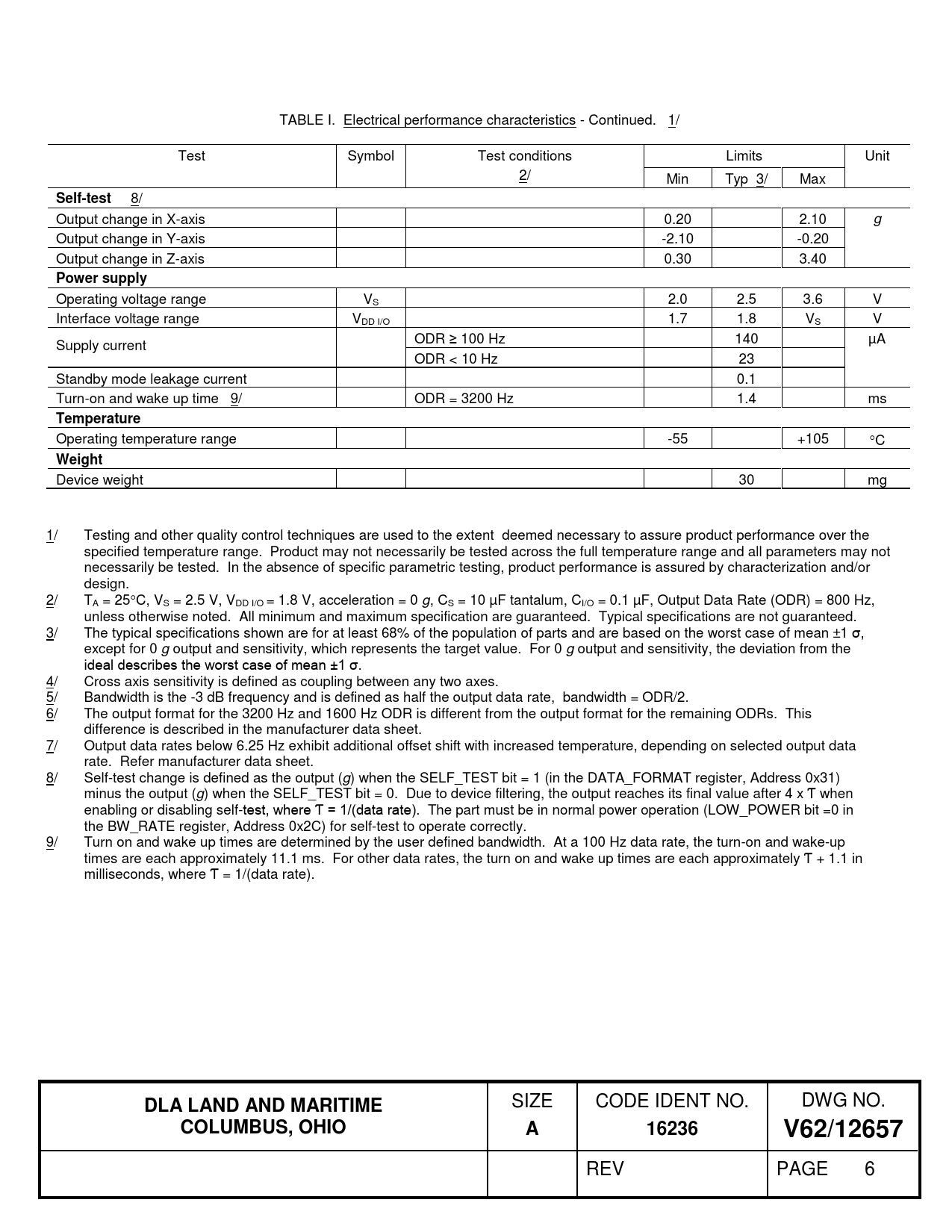 Self-test. Power supply. Temperature. Weight. DLA LAND AND MARITIME. COLUMBUS, OHIO. 16236. V62/12657