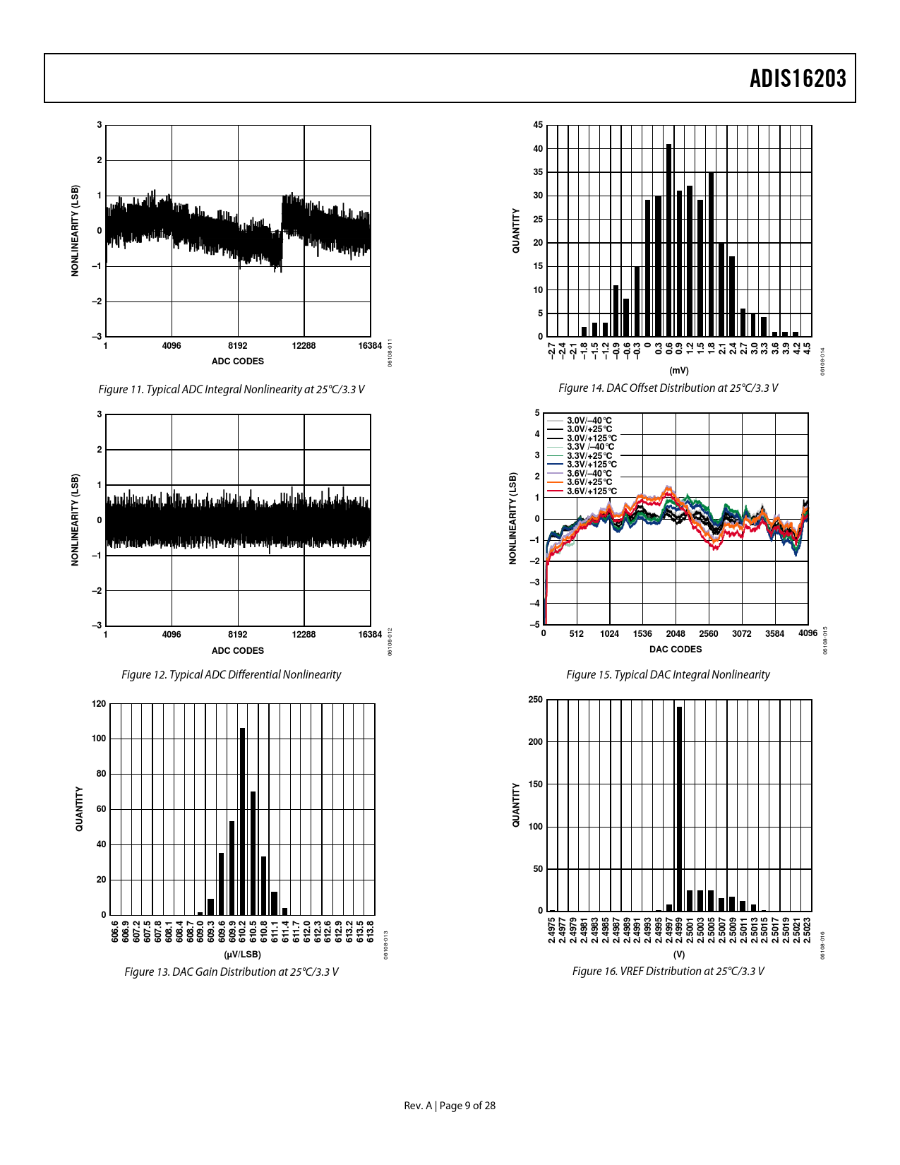 ADIS16203. B) S. L ( Y T. ARI. N A U. INE. 4096. 8192. 12288. 16384. ADC CODES. (mV). 3.0V/–40°C 3.0V/+25°C. 3.0V/+125°C. 3.3V /–40°C