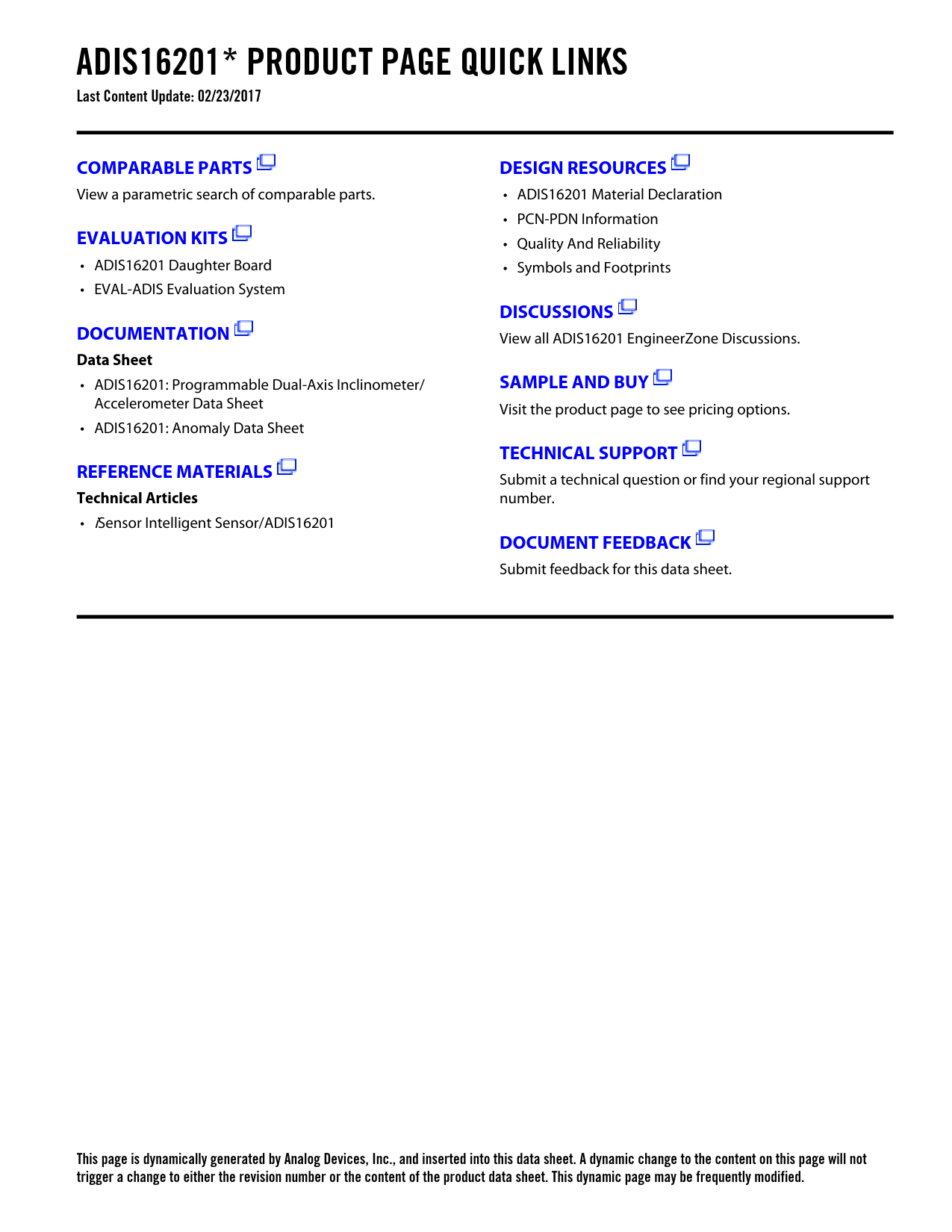页数 / 页33 / 2 — ADIS16201* PRODUCT PAGE QUICK LINKS Last Content Update: 02/23/2017. …