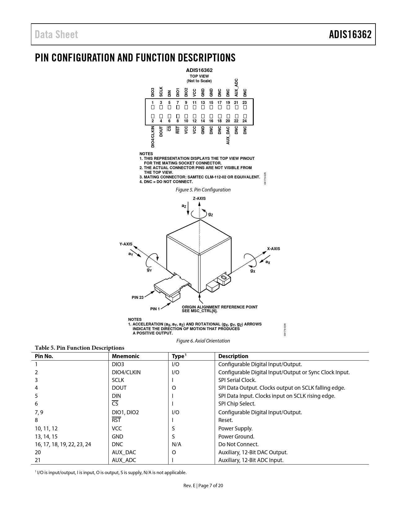 Data Sheet ADIS16362 PIN CONFIGURATION AND FUNCTION DESCRIPTIONS TOP VIEW (Not to Scale) _ADC IO3 IO1 IO2 DNC AUX _DAC IO4