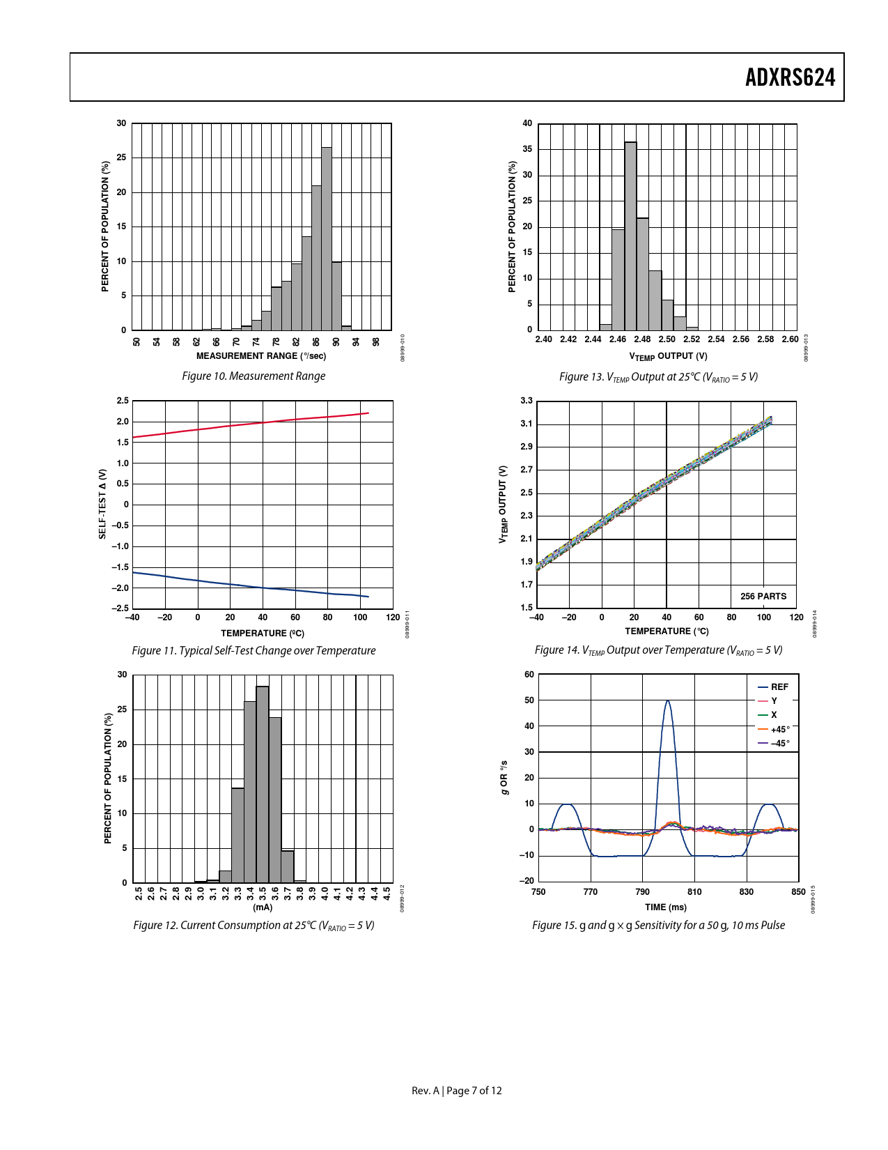 08999- Figure 12. Current Consumption at 25°C (VRATIO = 5 V) Figure 15. g and g × g Sensitivity for a 50 g, 10 ms Pulse Rev. A | Page 7 of 12 Document Outline Features Applications General Description Functional Block Diagram Revision History Specifications Absolute Maximum Ratings Rate-Sensitive Axis ESD Caution Pin Configuration and Function Descriptions Typical Performance Characteristics Theory of Operation Setting Bandwidth Temperature Output and Calibration Calibrated Performance ADXRS624 and Supply Ratiometricity Null Adjustment Self-Test Function Continuous Self-Test Outline Dimensions Ordering Guide Automotive Products
