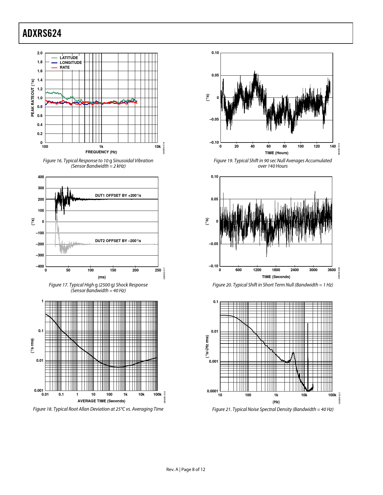 08999- Figure 16. Typical Response to 10 g Sinusoidal Vibration Figure 19. Typical Shift in 90 sec Null Averages Accumulated (Sensor Bandwidth = 2 kHz) over 140 Hours
