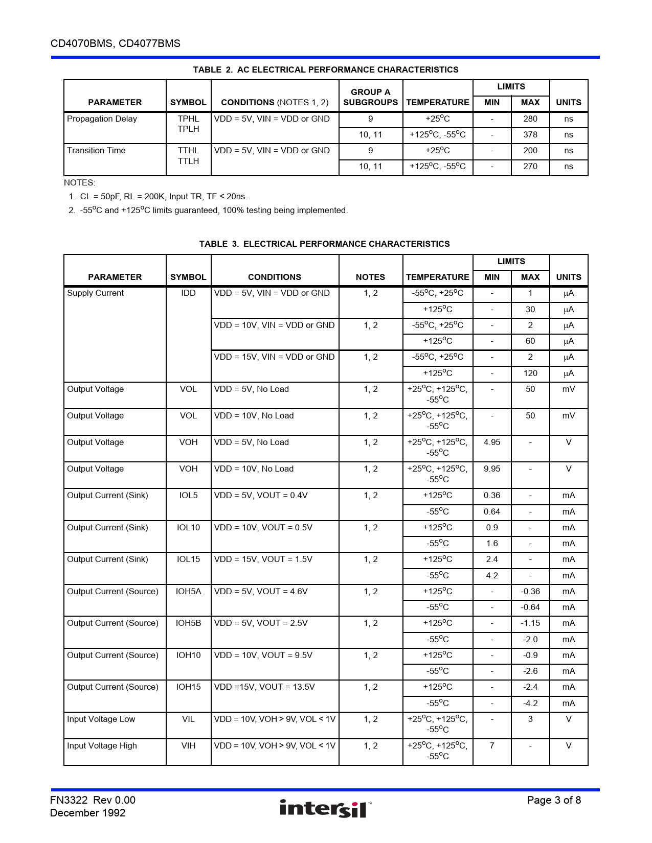 Datasheet CD4070BMS, CD4077BMS (Intersil) - 3