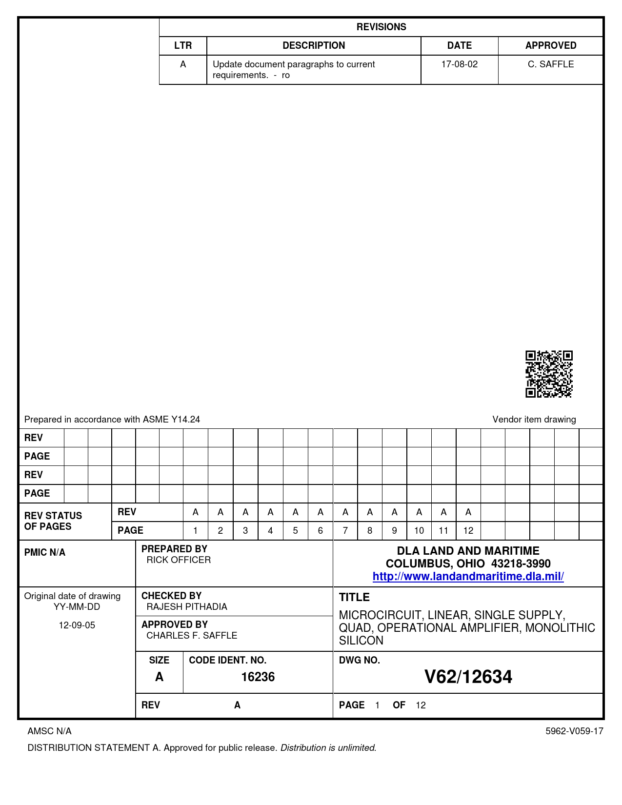 12 AMSC N/A 5962-V059-17 DISTRIBUTION STATEMENT A. Approved for public release. Distribution is unlimited.