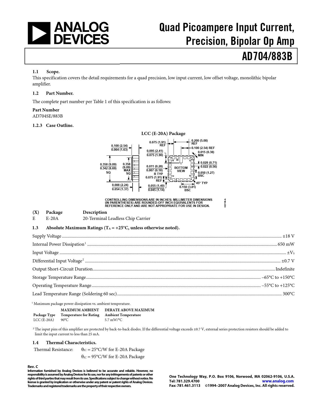 Datasheet AD704/883B (Analog Devices)