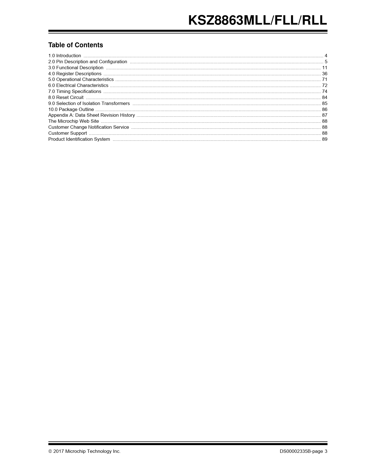 KSZ8863MLL/FLL/RLL Table of Contents