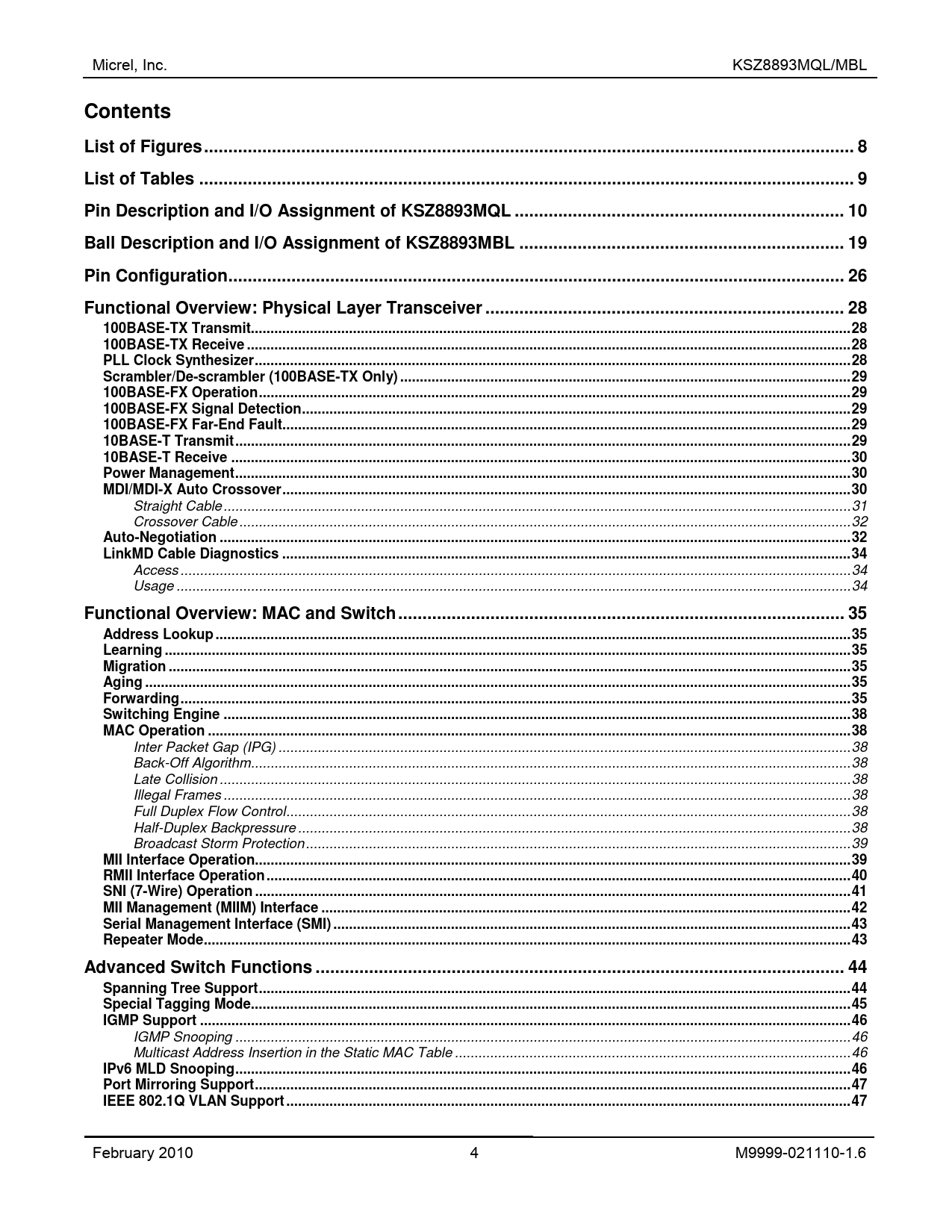 Micrel, Inc. KSZ8893MQL/MBL Contents