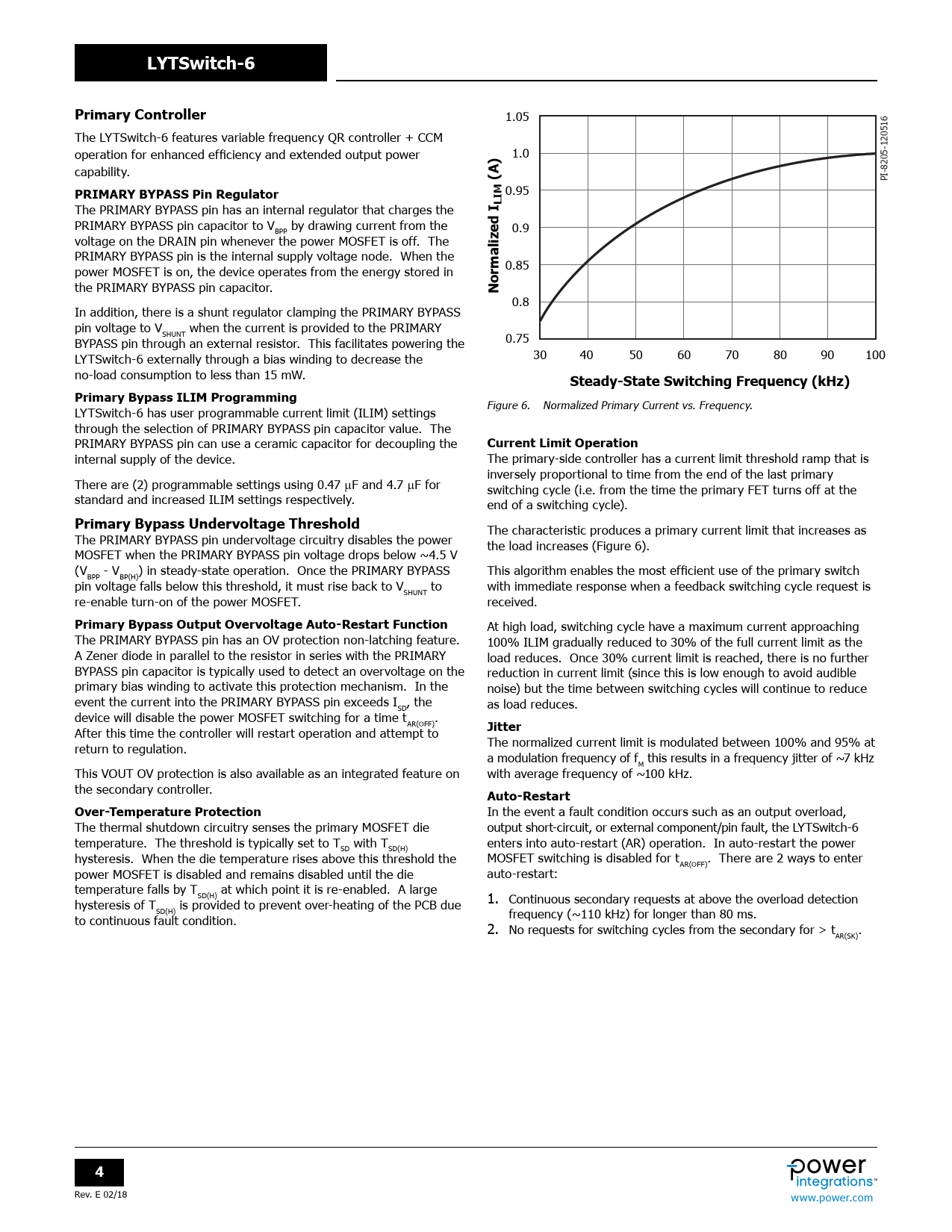 LYTSwitch-6. Primary Controller. PRIMARY BYPASS Pin Regulator. LIM. ormalized I. Steady-State Switching Frequency (kHz)