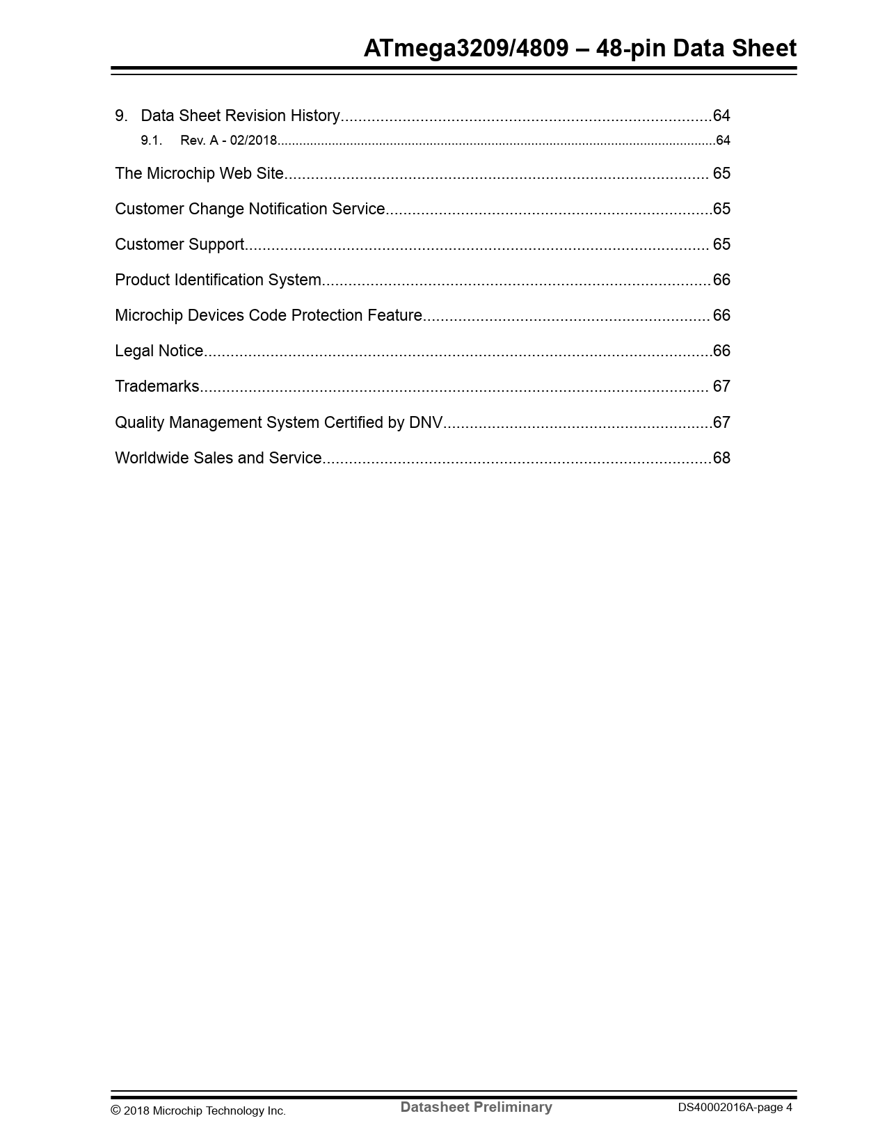 | 页数 / 页 | 68 / 4 — ATmega3209/4809 – 48-pin Data Sheet. Datasheet Preliminary |