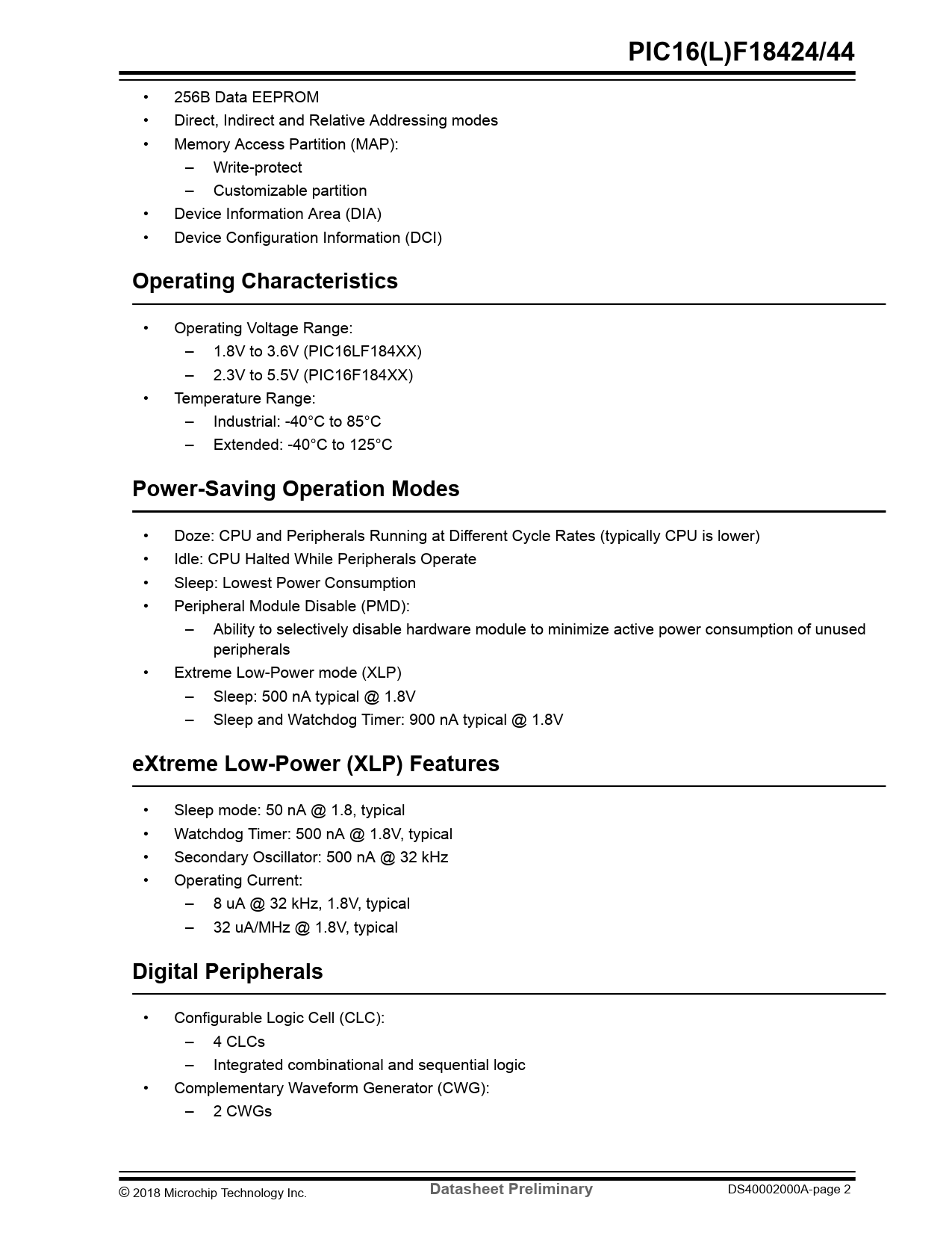 Datasheet PIC16F18424, PIC16F18444, PIC16LF18424, PIC16LF18444 (Microchip) - 2