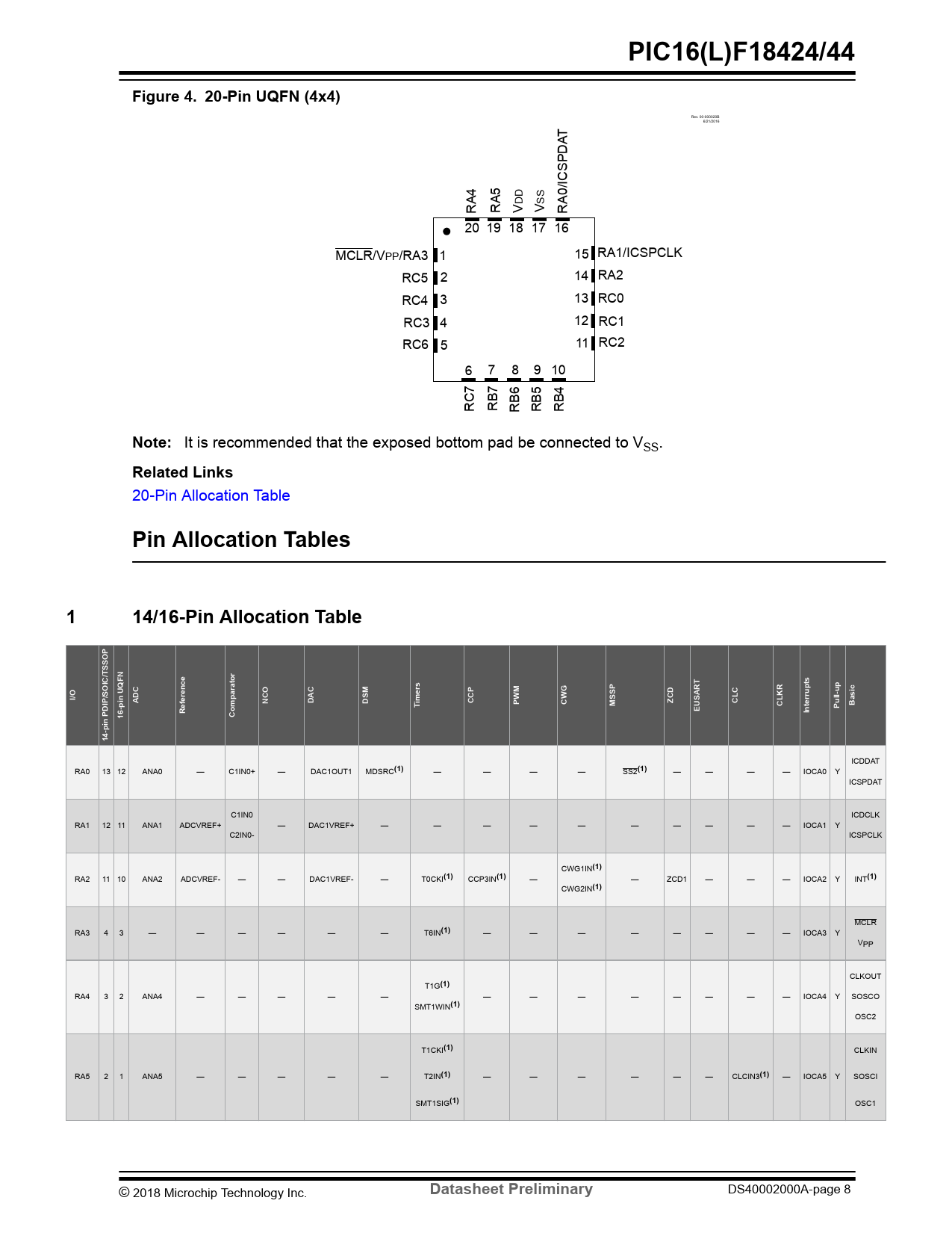 | 页数 / 页 | 756 / 8 — PIC16(L)F18424/44. Figure 4. 20-Pin UQFN (4x4). Note: . Related Links. … |
