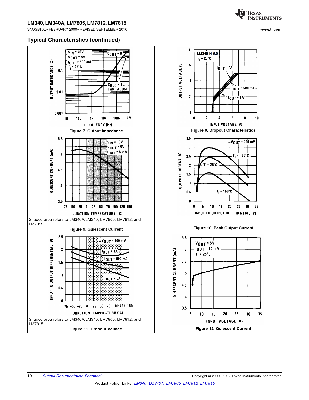 Datasheet LM340, LM340A, LM7805, LM7812, LM7815 (Texas Instruments) - 10