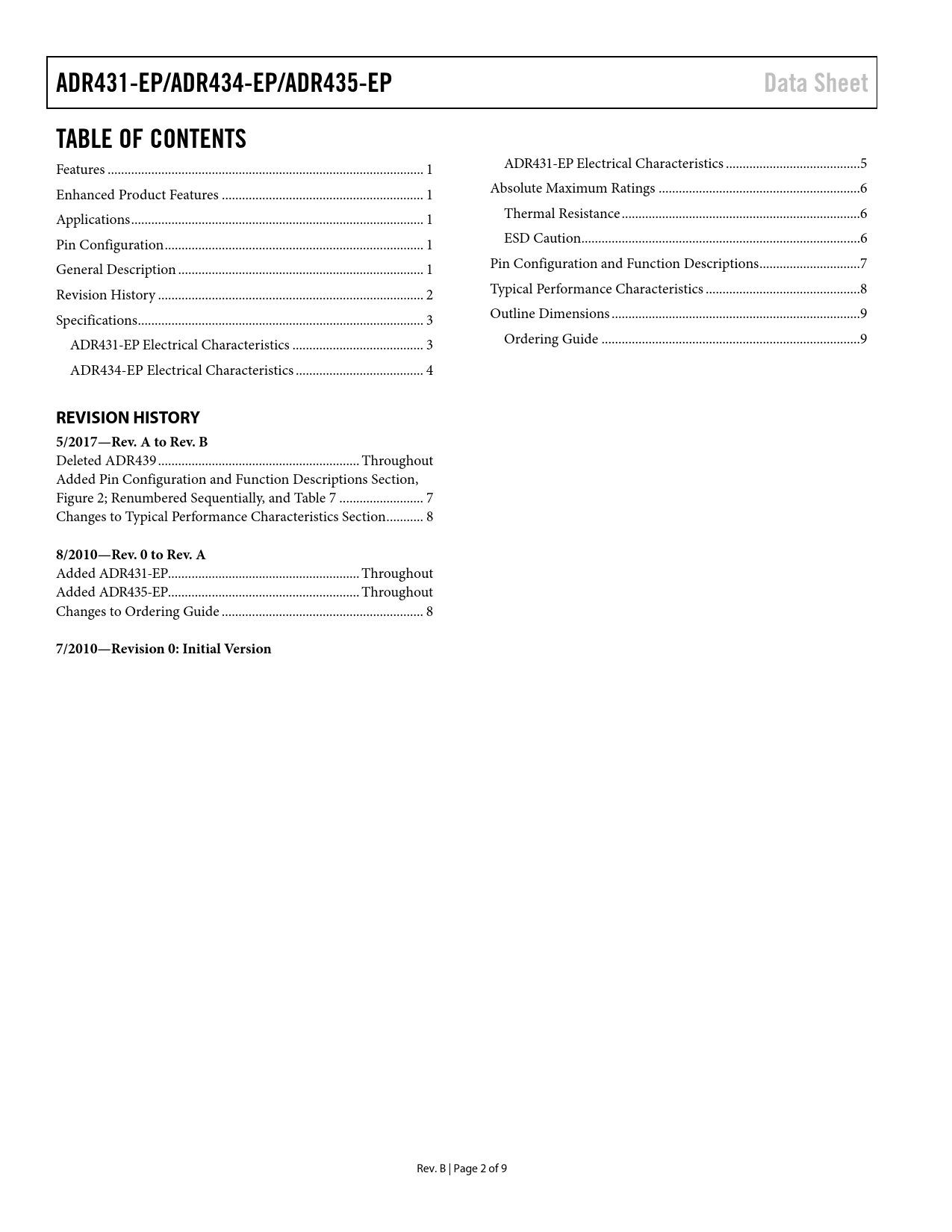 ADR431-EP/ADR434-EP/ADR435-EP Data Sheet TABLE OF CONTENTS REVISION HISTORY 5/2017—Rev A to Rev B 8/2010—Rev 0 to Rev A