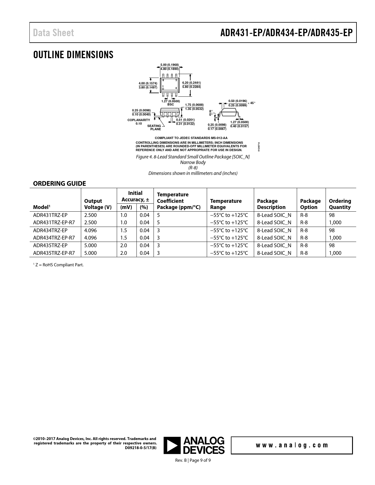 | 页数 / 页 | 9 / 9 — Data Sheet. ADR431-EP/ADR434-EP/ADR435-EP. OUTLINE DIMENSIONS. 5.00 … |