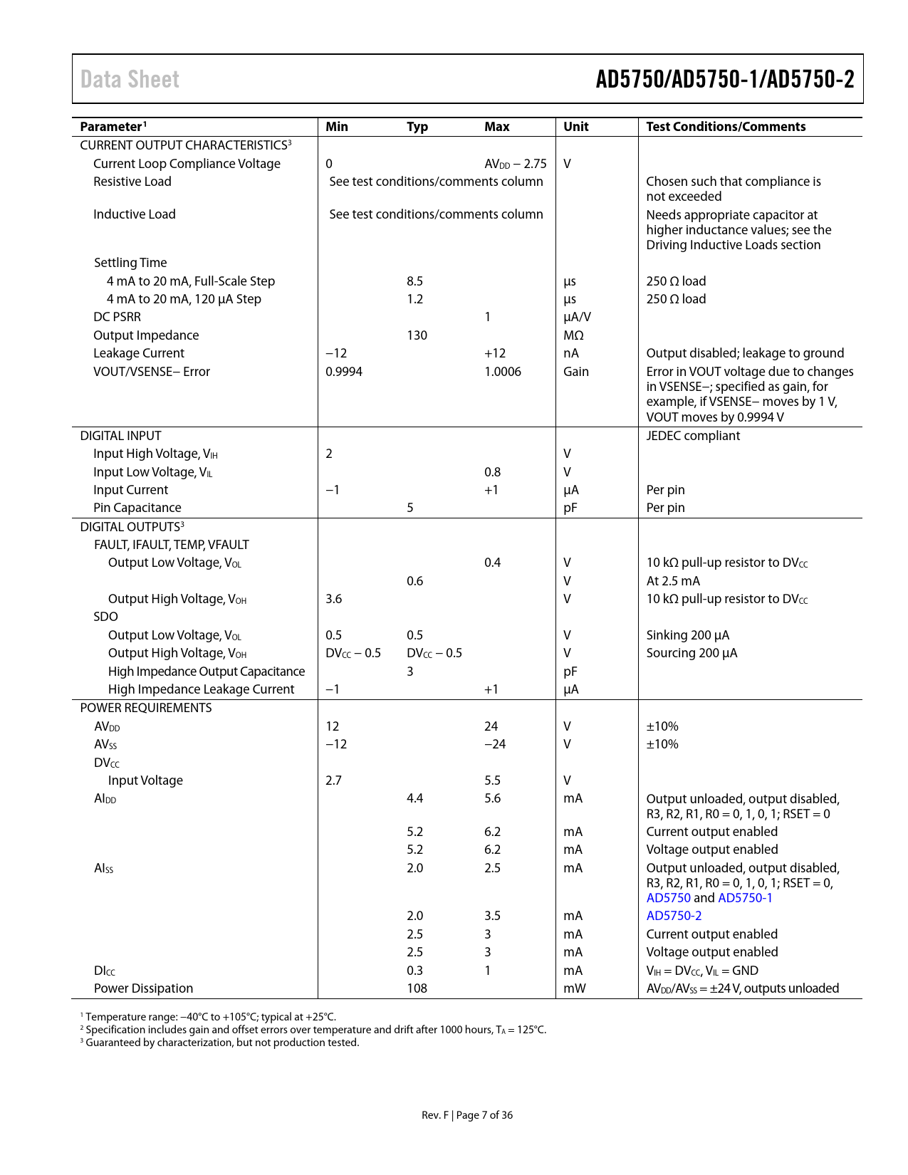 Data Sheet AD5750/AD5750-1/AD5750-2 Parameter1 Min Typ Max Unit Test Conditions/Comments