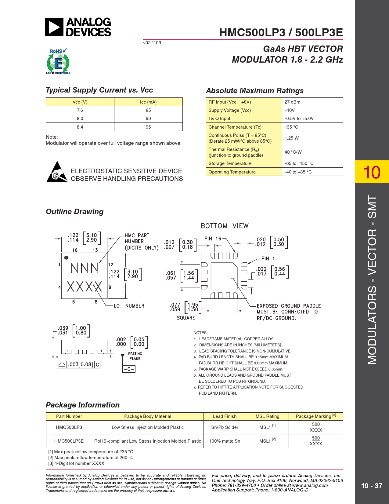 Datasheet HMC500LP3, 500LP3E (Analog Devices) - 4