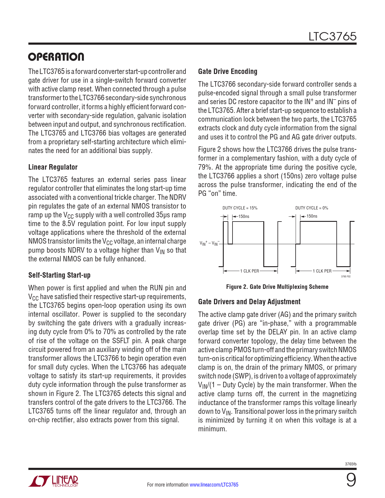 页数 / 页24 / 9 — OPERATION. Gate Drive Encoding. Linear Regulator. Self-Starting Start-up. …