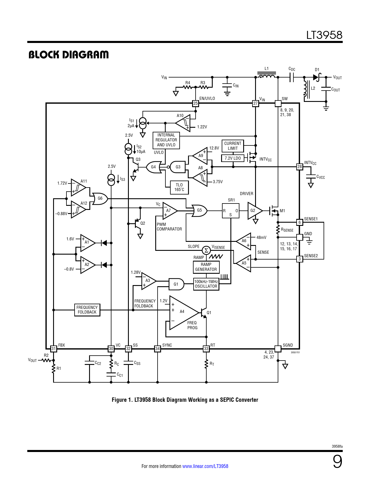 | 页数 / 页 | 30 / 9 — block DiagraM. Figure 1. LT3958 Block Diagram Working as a SEPIC Converter |