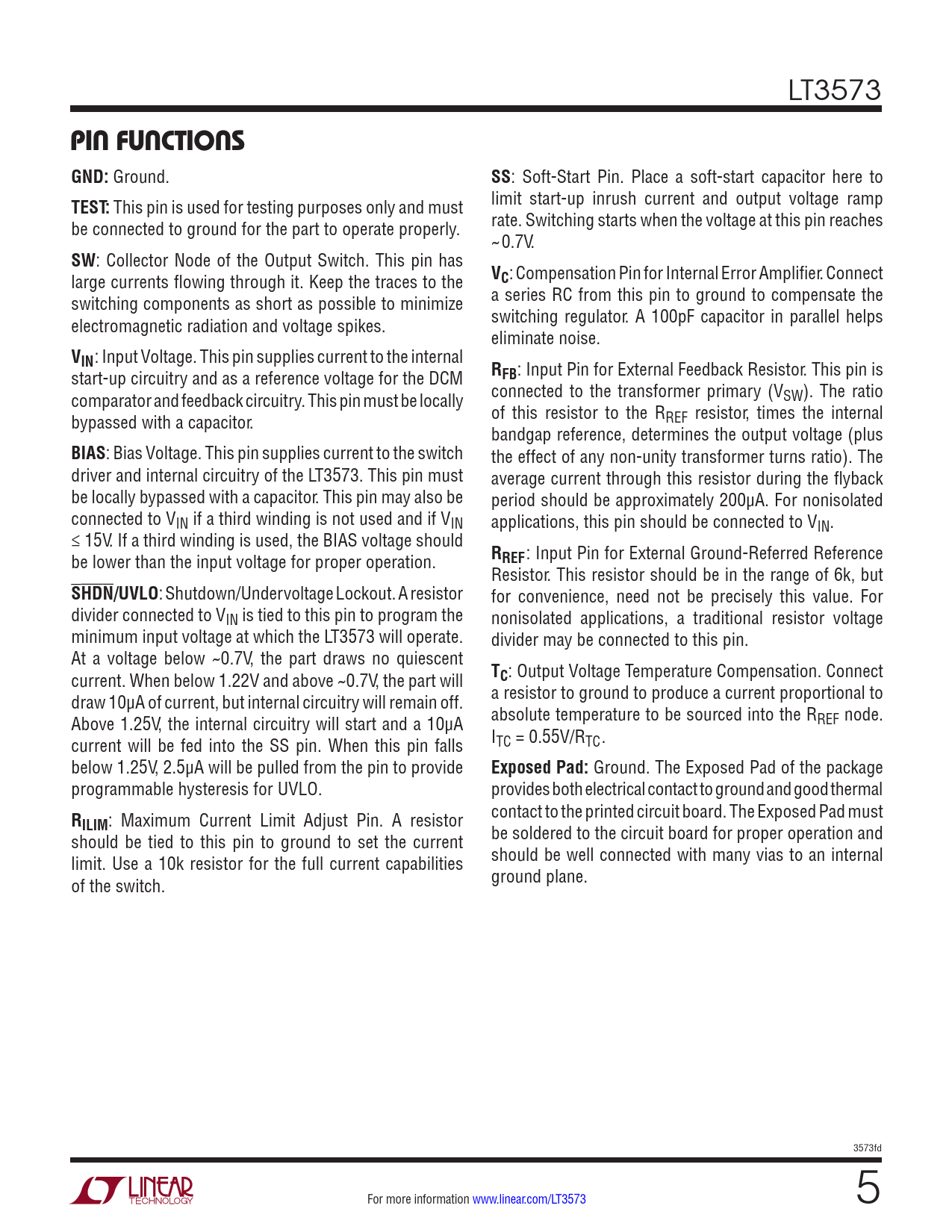 页数 / 页26 / 5 — PIN FUNCTIONS. GND:. TEST:. VIN. RFB. BIAS. RREF. SHDN/UVLO. Exposed …