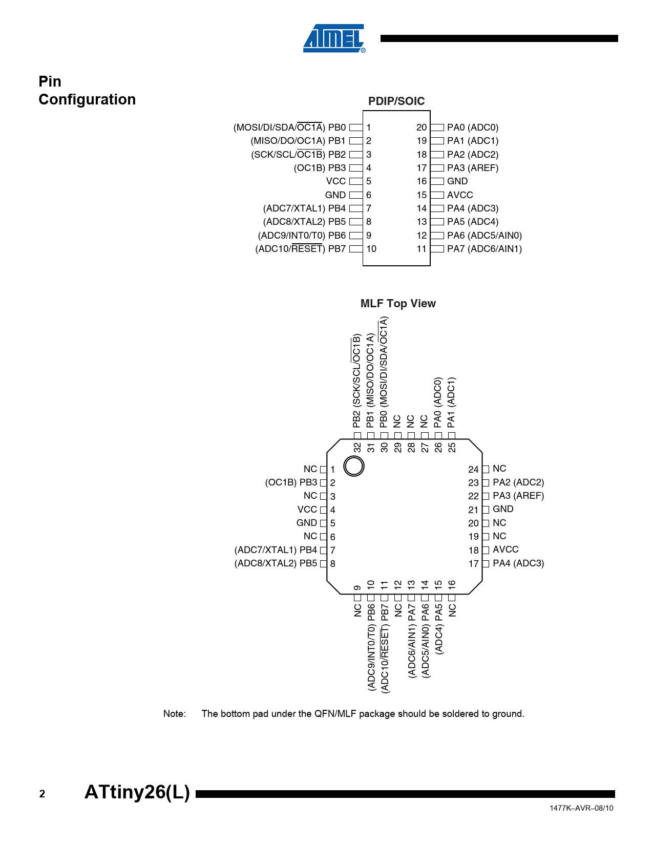 Pin Configuration. PDIP/SOIC. MLF Top View. ATtiny26(L)