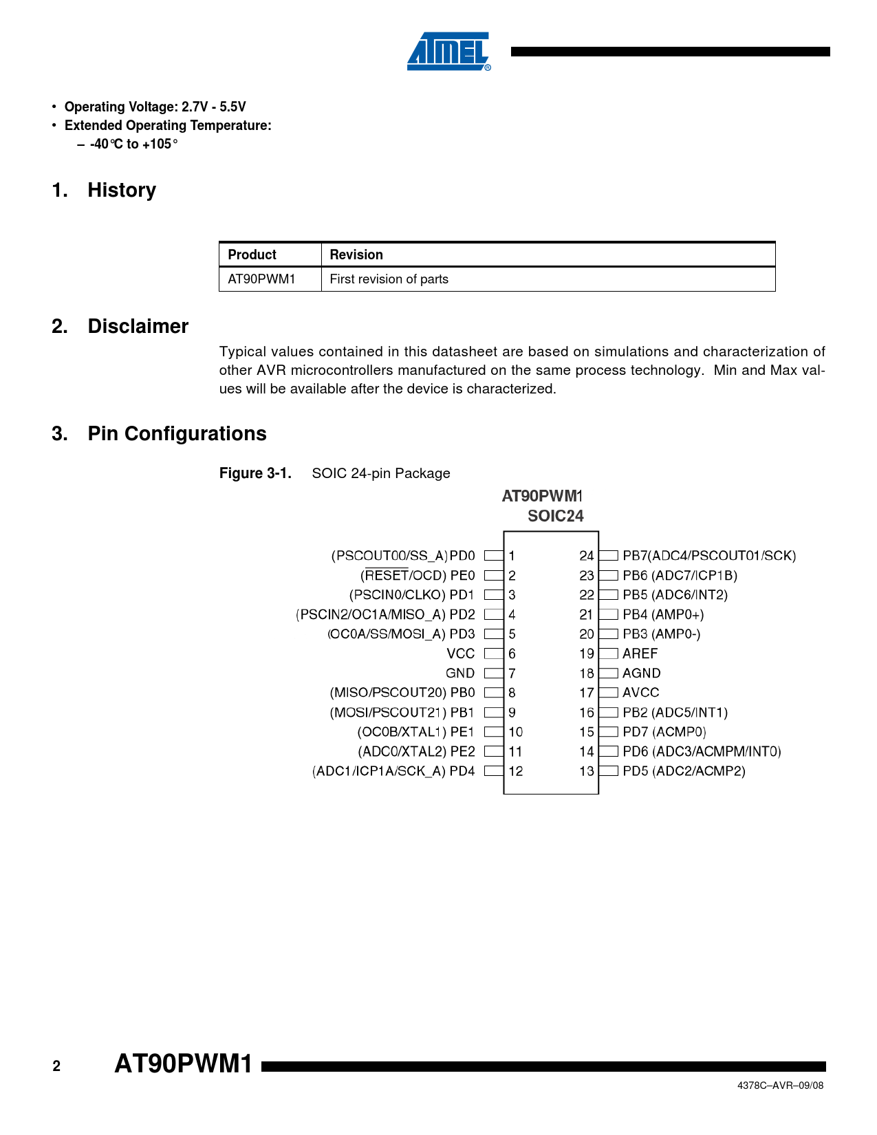 Operating Voltage: 2.7V - 5.5V. Extended Operating Temperature:. – -40°C to +105°. History. Product. Revision. Disclaimer