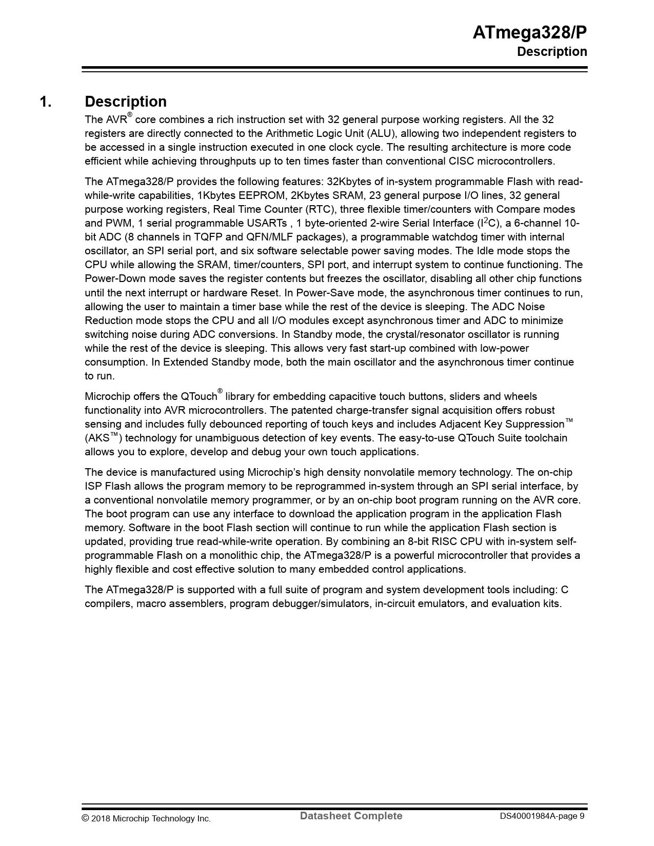 | 页数 / 页 | 445 / 9 — ATmega328/P. Description. Datasheet Complete |
