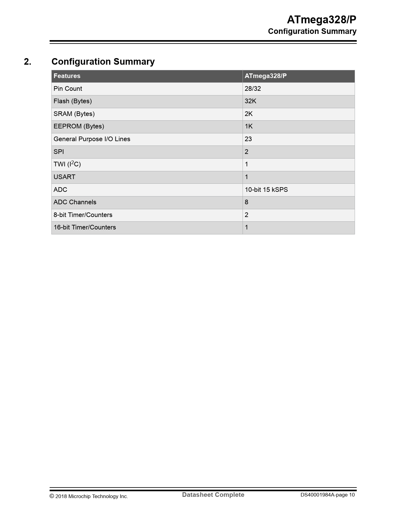 ATmega328/P Configuration Summary 2. Configuration Summary Features ATmega328/P