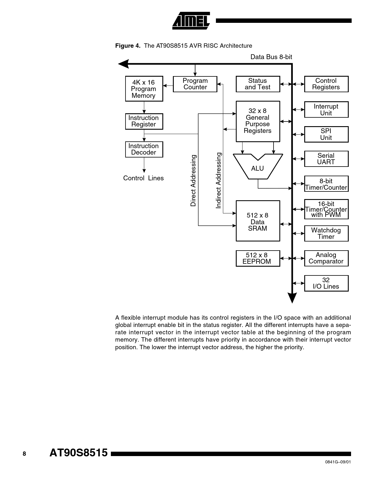页数 / 页112 / 8 — Figure 4. The AT90S8515 AVR RISC Architecture Data Bus 8-bit 4K x 16. …