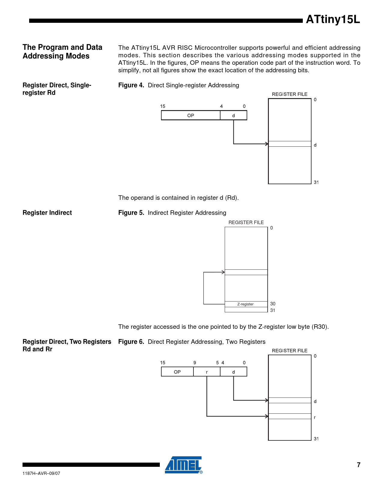 ATtiny15L. The Program and Data. Addressing Modes. Register Direct, Single-. Figure 4. register Rd. Register Indirect. Figure 5