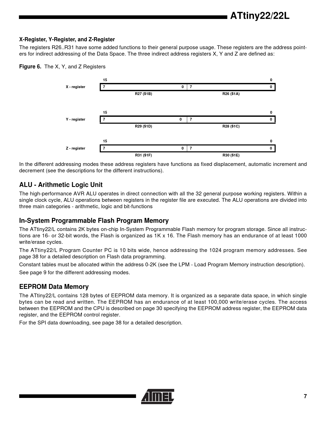 页数 / 页59 / 7 — ATtiny22/22L. X-Register, Y-Register, and Z-Register. Figure 6. X - …