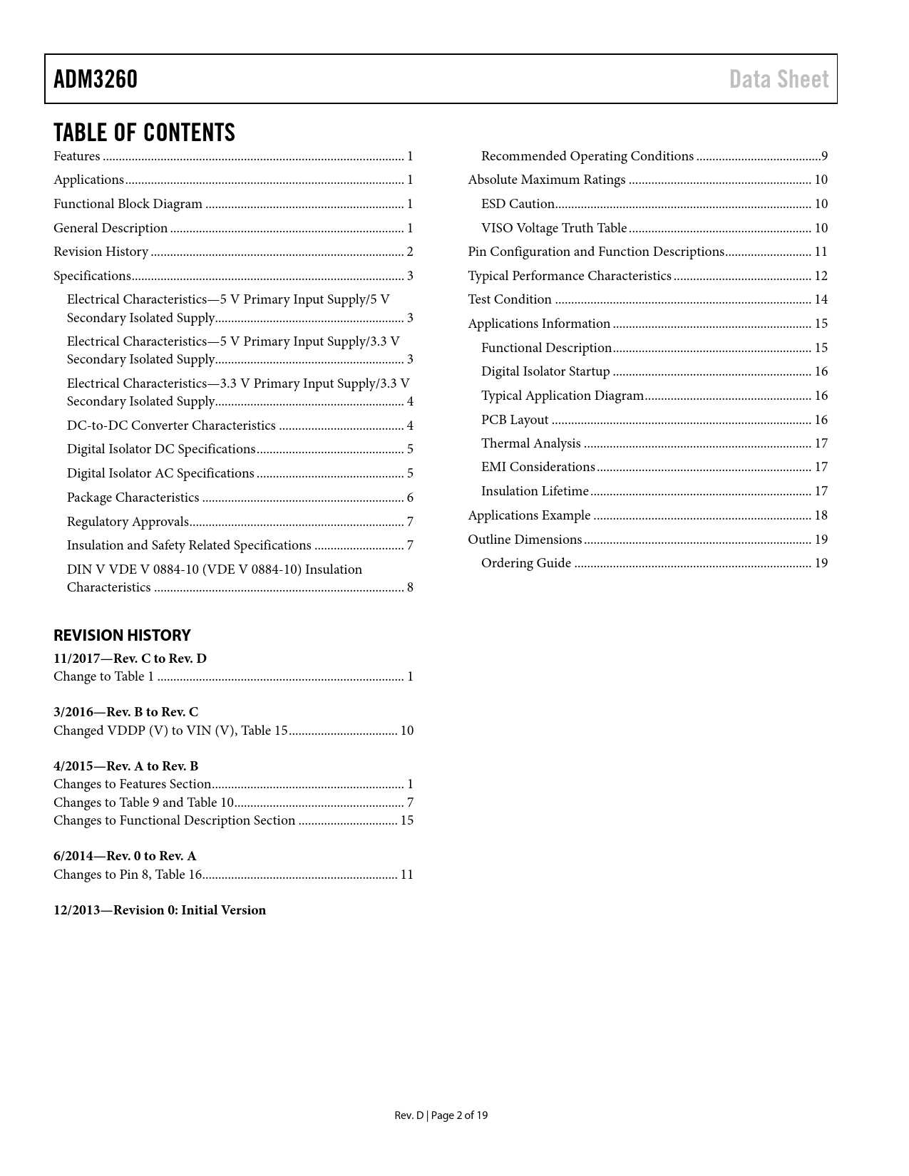 页数 / 页19 / 2 — ADM3260. Data Sheet. TABLE OF CONTENTS. REVISION HISTORY 11/2017—Rev. C …
