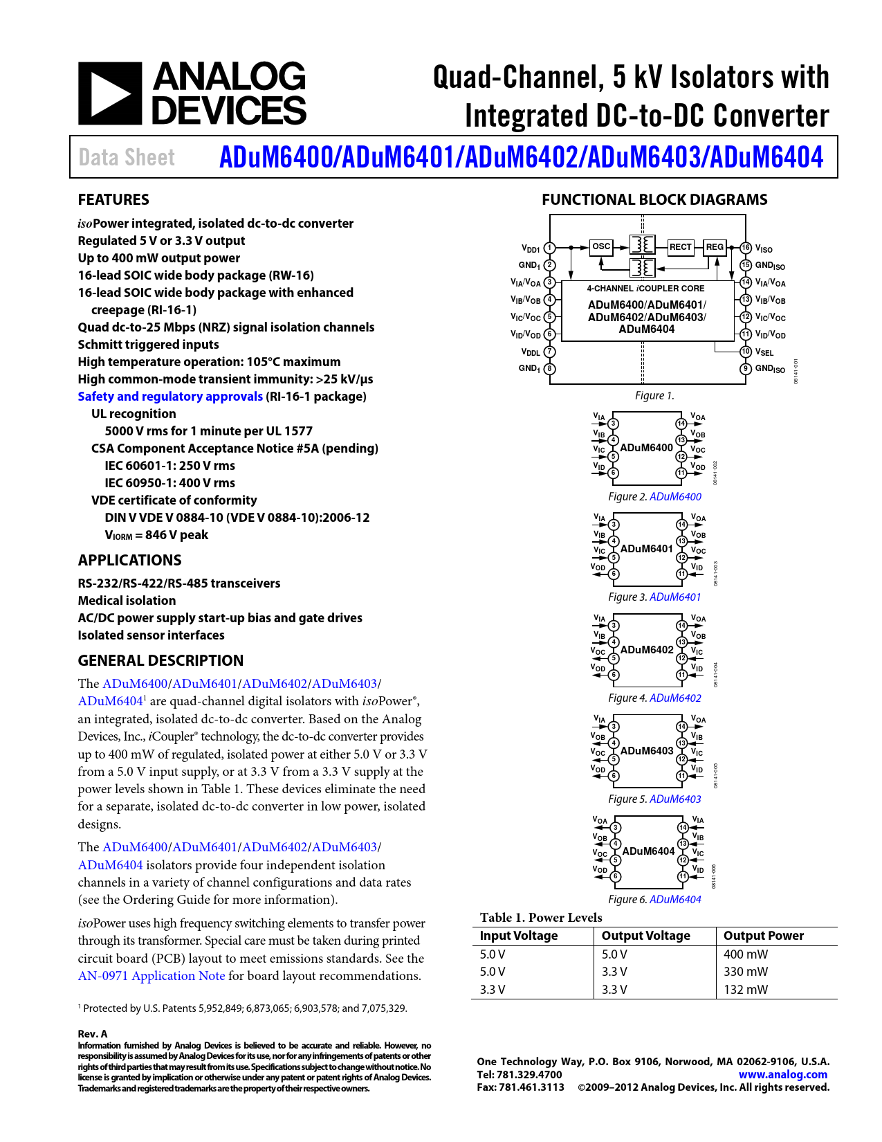 Datasheet ADuM6400, ADuM6401, ADuM6402, ADuM6403, ADuM6404 (Analog Devices)