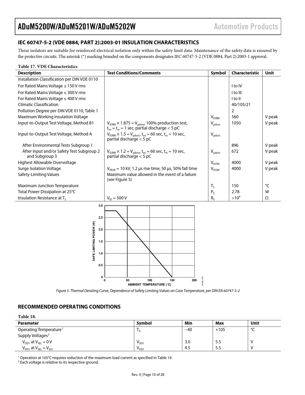 页数 / 页28 / 10 — ADuM5200W/ADuM5201W/ADuM5202W. Automotive Products. IEC 60747-5-2 (VDE …