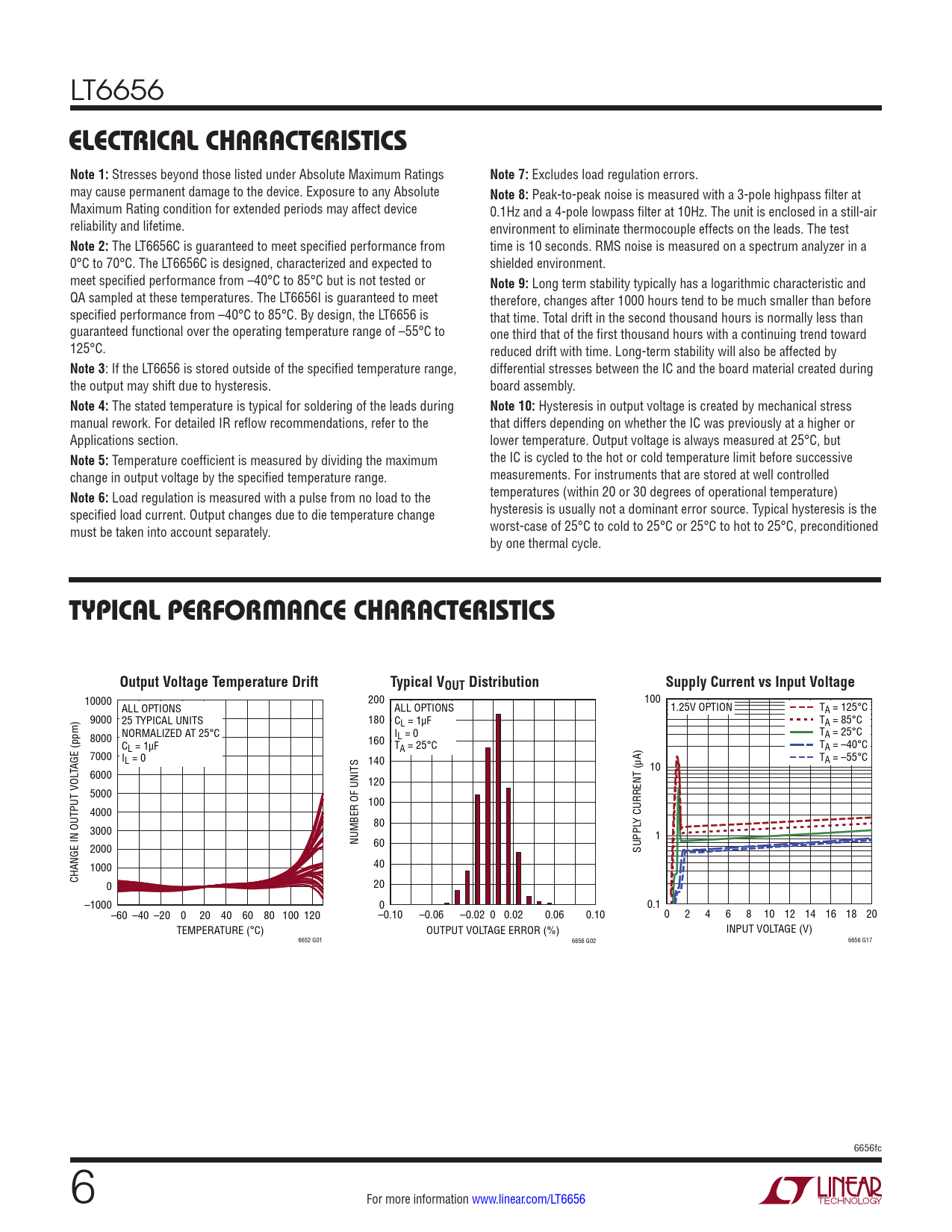 : If the LT6656 is stored outside of the specified temperature range, differential stresses between the IC and the board material created during the output may shift due to hysteresis. board assembly.