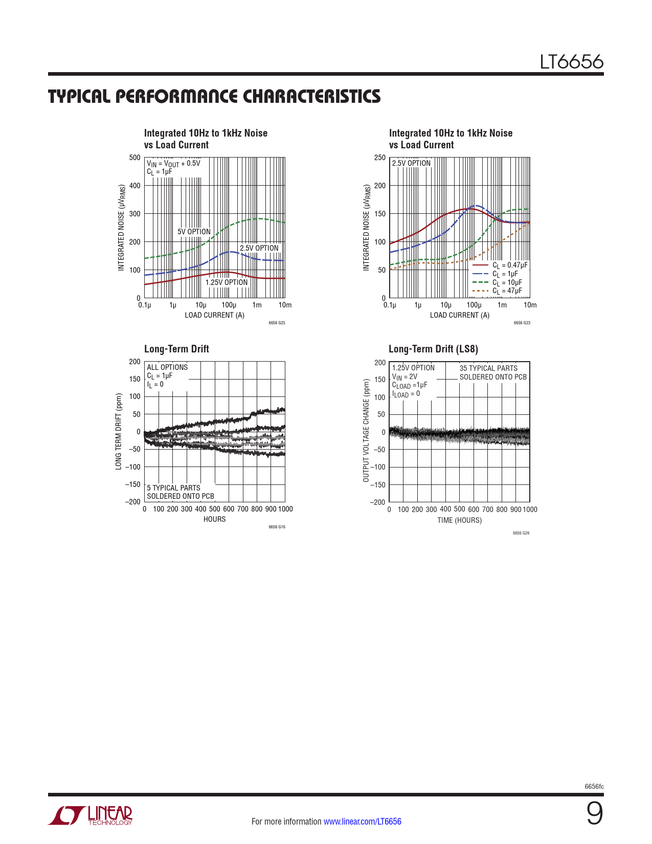 TYPICAL PERFORMANCE CHARACTERISTICS. Integrated 10Hz to 1kHz Noise. vs Load Current. Long-Term Drift. Long-Term Drift (LS8)