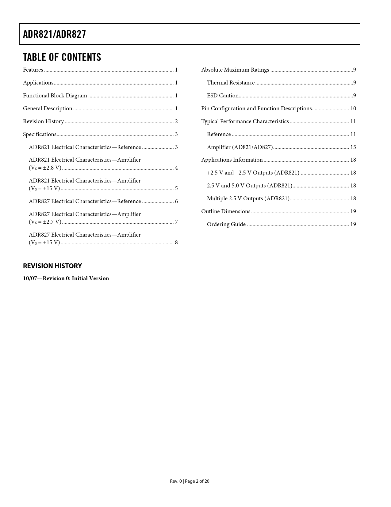 页数 / 页20 / 2 — ADR821/ADR827. TABLE OF CONTENTS. REVISION HISTORY. 10/07—Revision 0: …