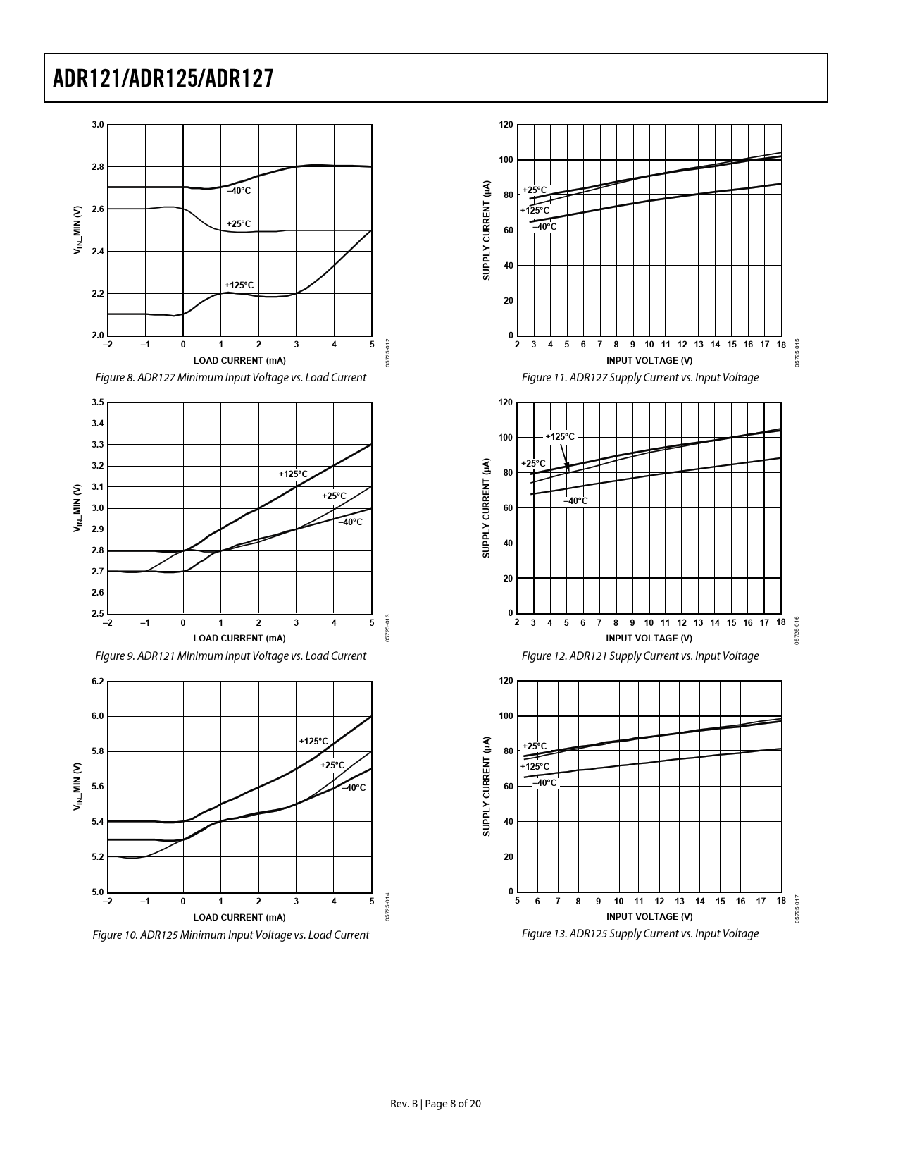 ADR121/ADR125/ADR127. 3.0. 120. 100. 2.8. –40°C. A) µ. +25°C. ) V. 2.6. +125°C. _M IN. CUR. 2.4. Y L P P. U S. 2.2. 2.0. 9 10 11 12 13 14 15 16 17 18