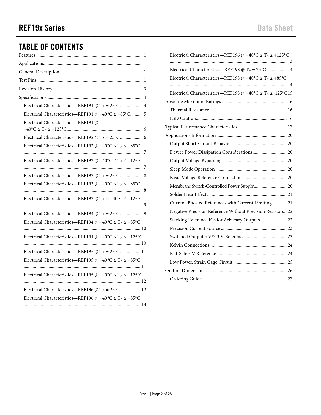 REF19x Series. Data Sheet. TABLE OF CONTENTS