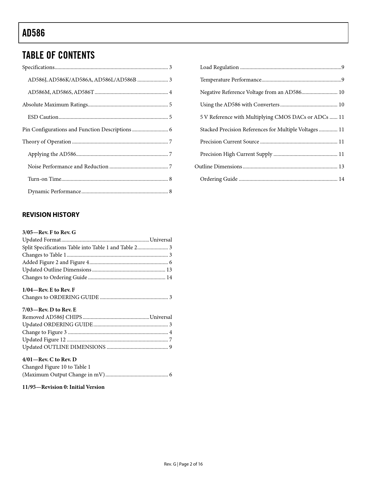 页数 / 页16 / 2 — AD586. TABLE OF CONTENTS. REVISION HISTORY. 3/05—Rev. F to Rev. G. …