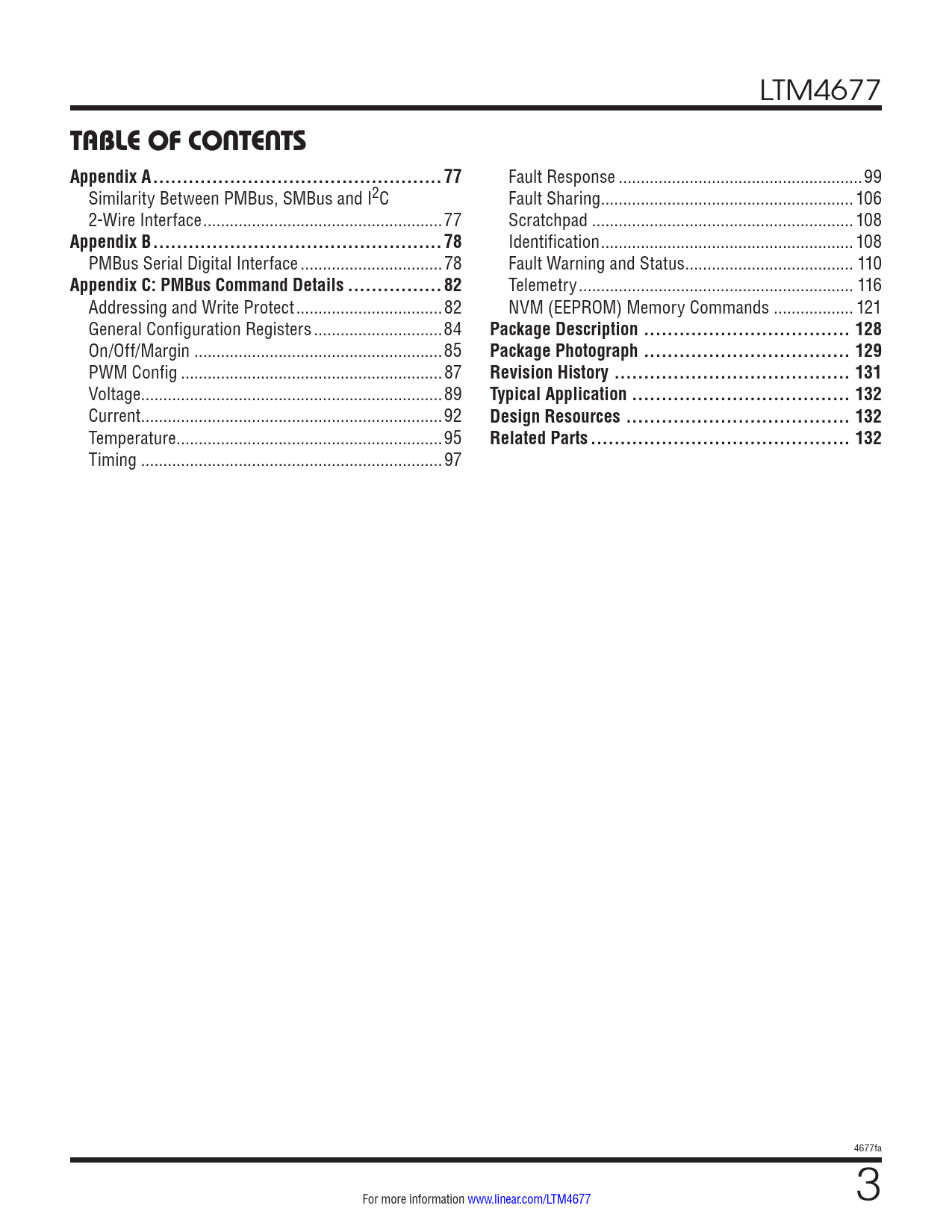 页数 / 页132 / 3 — Table oF conTenTs Appendix A ...77. Appendix B ...78. Appendix C: PMBus …
