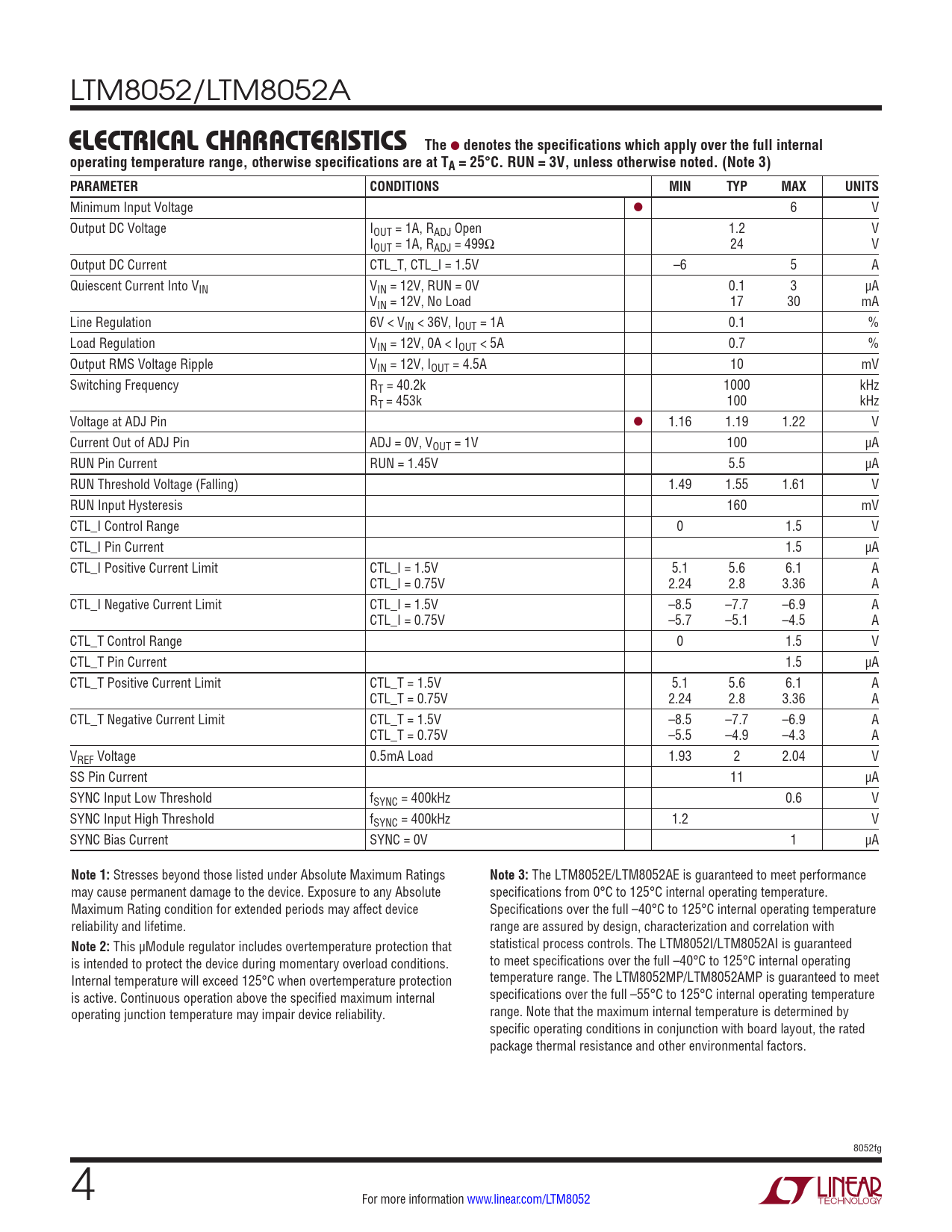 Datasheet LTM8052, LTM8052A (Analog Devices) - 4
