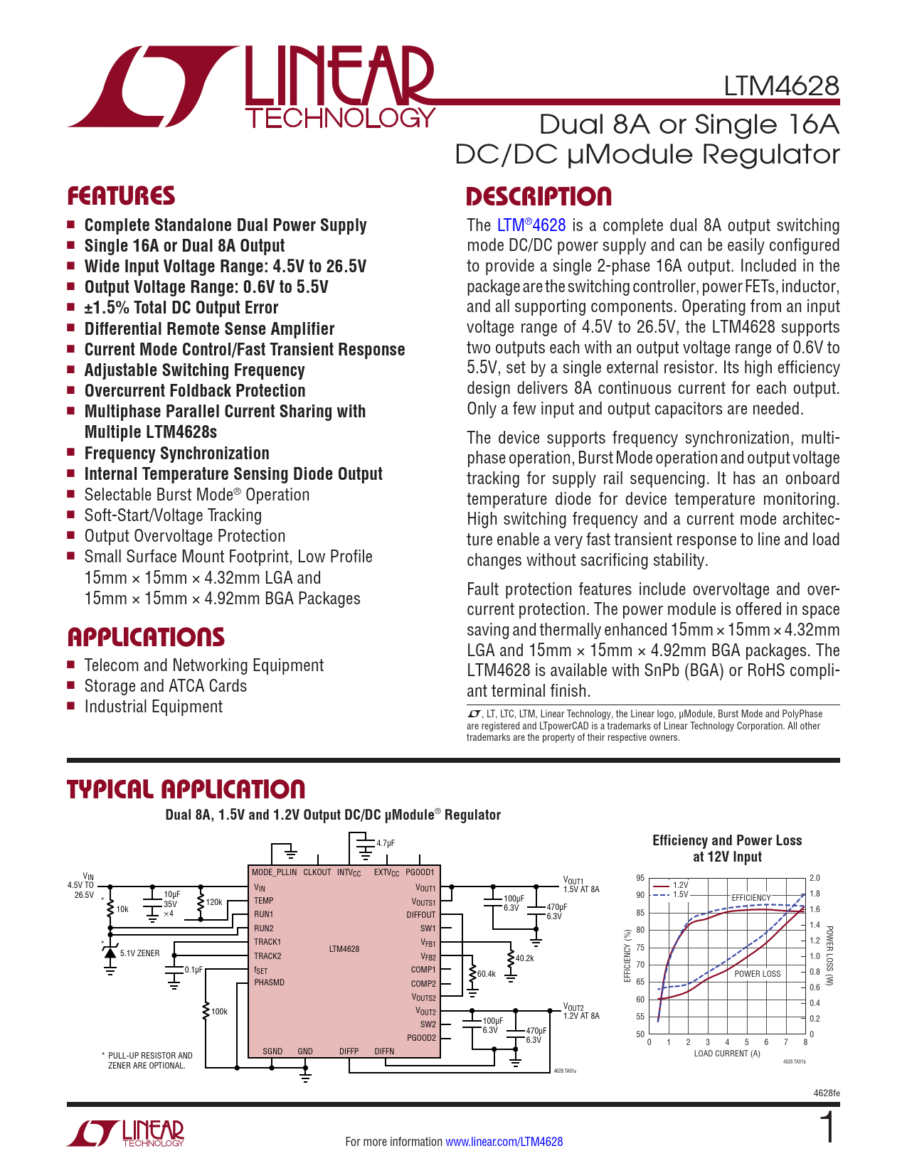 voltage range of 4.5V to 26.5V, the LTM4628 supports n
