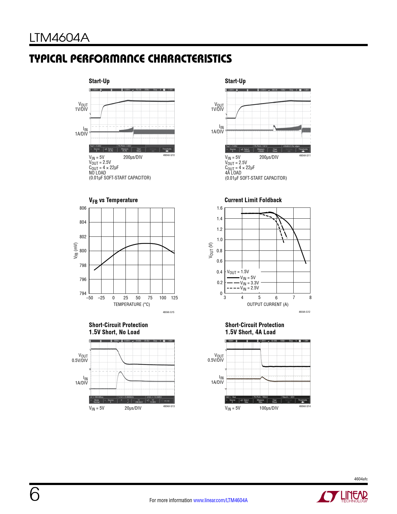 Typical perForMance characTerisTics. Start-Up. VFB vs Temperature. Current Limit Foldback. Short-Circuit Protection