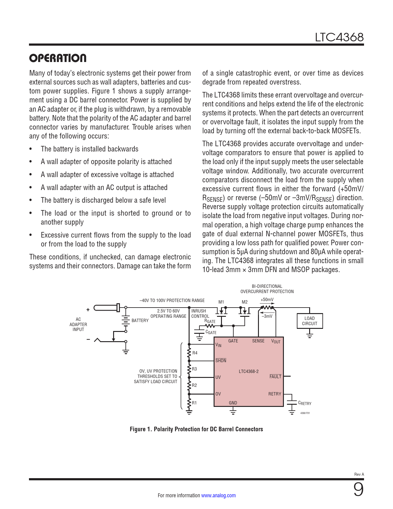 OPERATION. Figure 1. Polarity Protection for DC Barrel Connectors