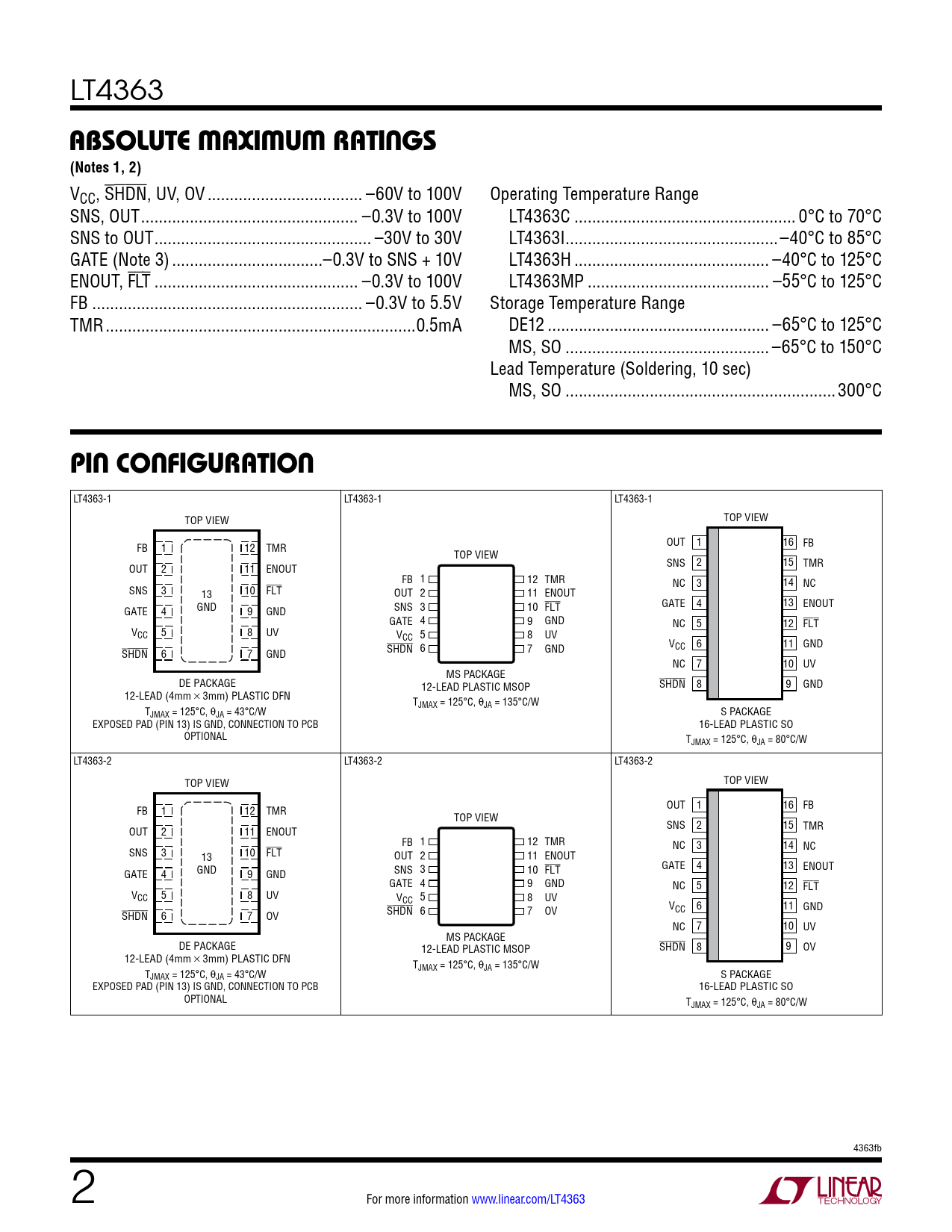 absoluTe MaxiMuM raTings. (Notes 1, 2). pin conFiguraTion