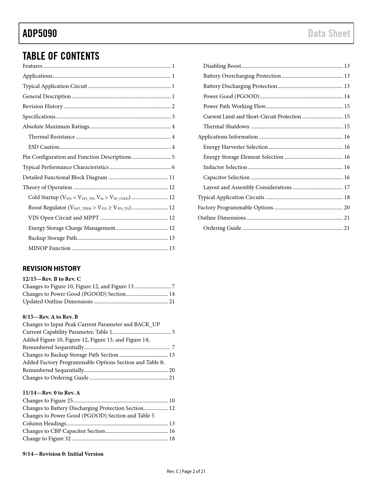 页数 / 页21 / 2 — ADP5090. Data Sheet. TABLE OF CONTENTS. REVISION HISTORY 12/15—Rev. B to …