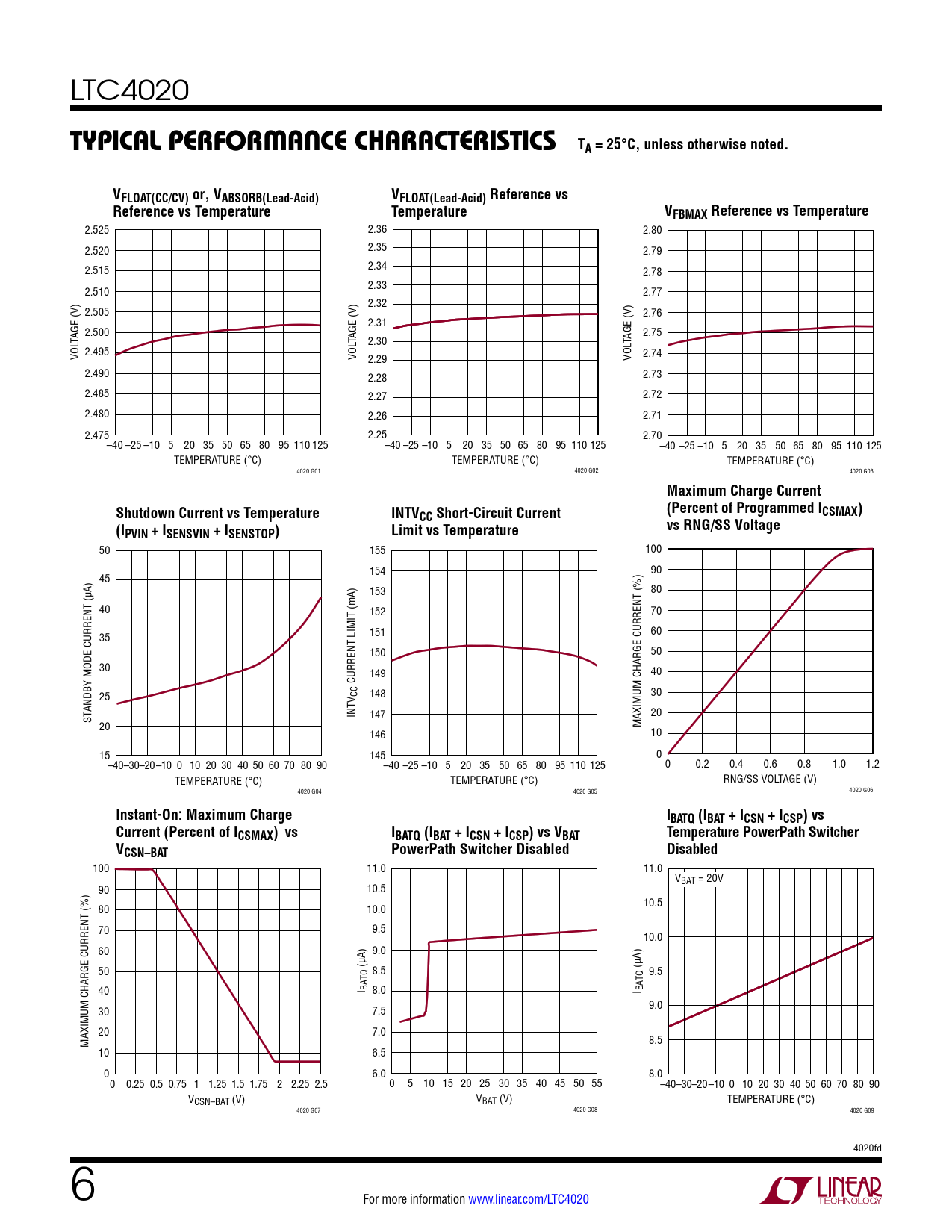 Typical perForMance characTerisTics TA = 25°C, unless otherwise noted. VFLOAT(CC/CV) or, VABSORB(Lead-Acid) VFLOAT(Lead-Acid) Reference vs Reference vs Temperature Temperature VFBMAX Reference vs Temperature