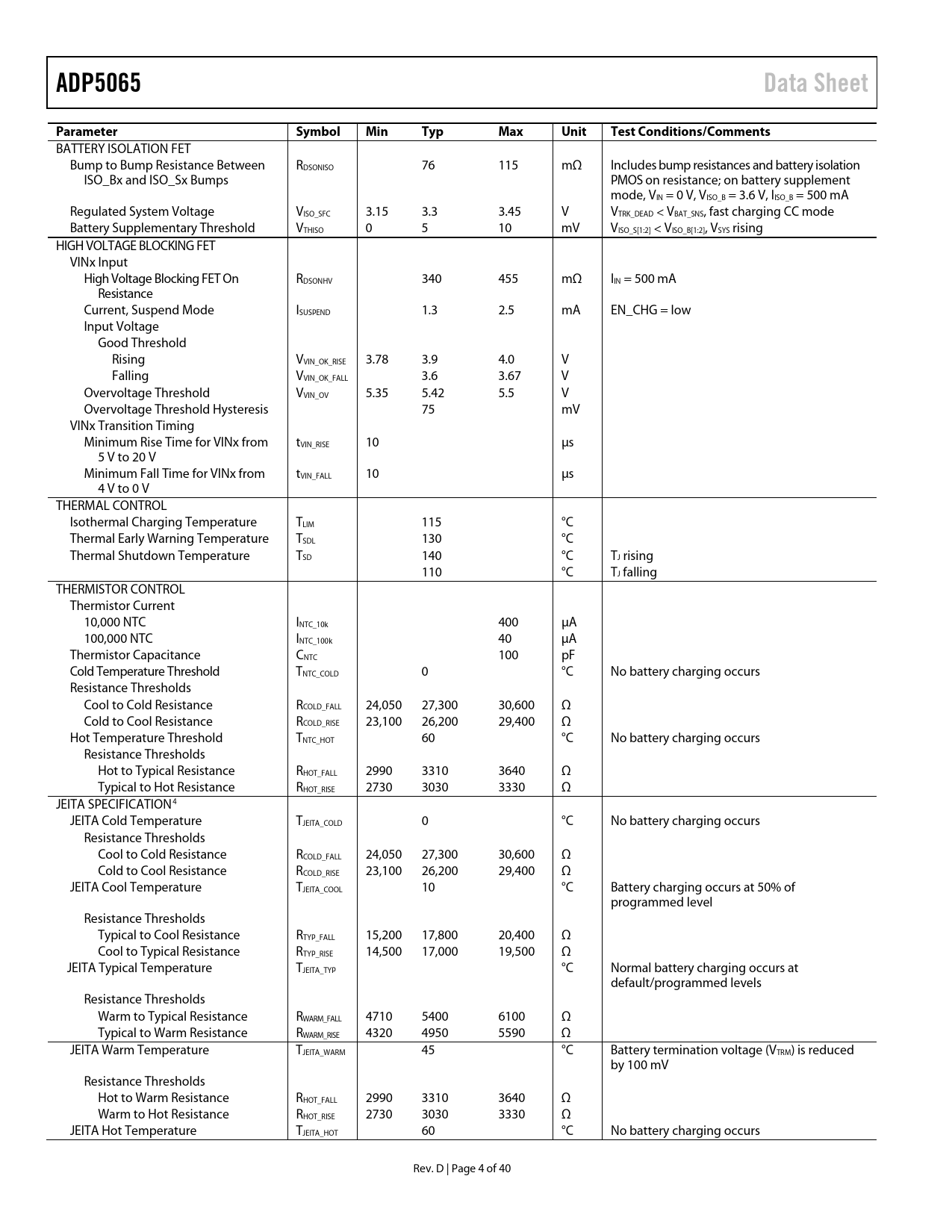页数 / 页40 / 4 — ADP5065. Data Sheet. Parameter. Symbol. Min. Typ. Max. Unit. Test …